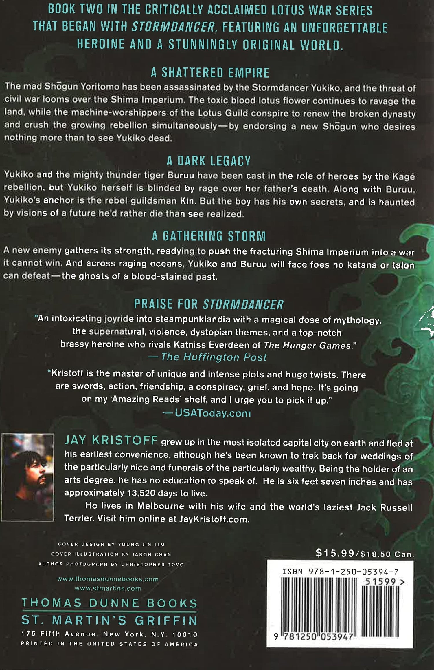 Kinslayer is Book Two in Jay Kristoff's critically acclaimed Lotus War series that began with Stormdancer, featuring an unforgettable heroine and a stunningly original Japanese dystopian steampunk world