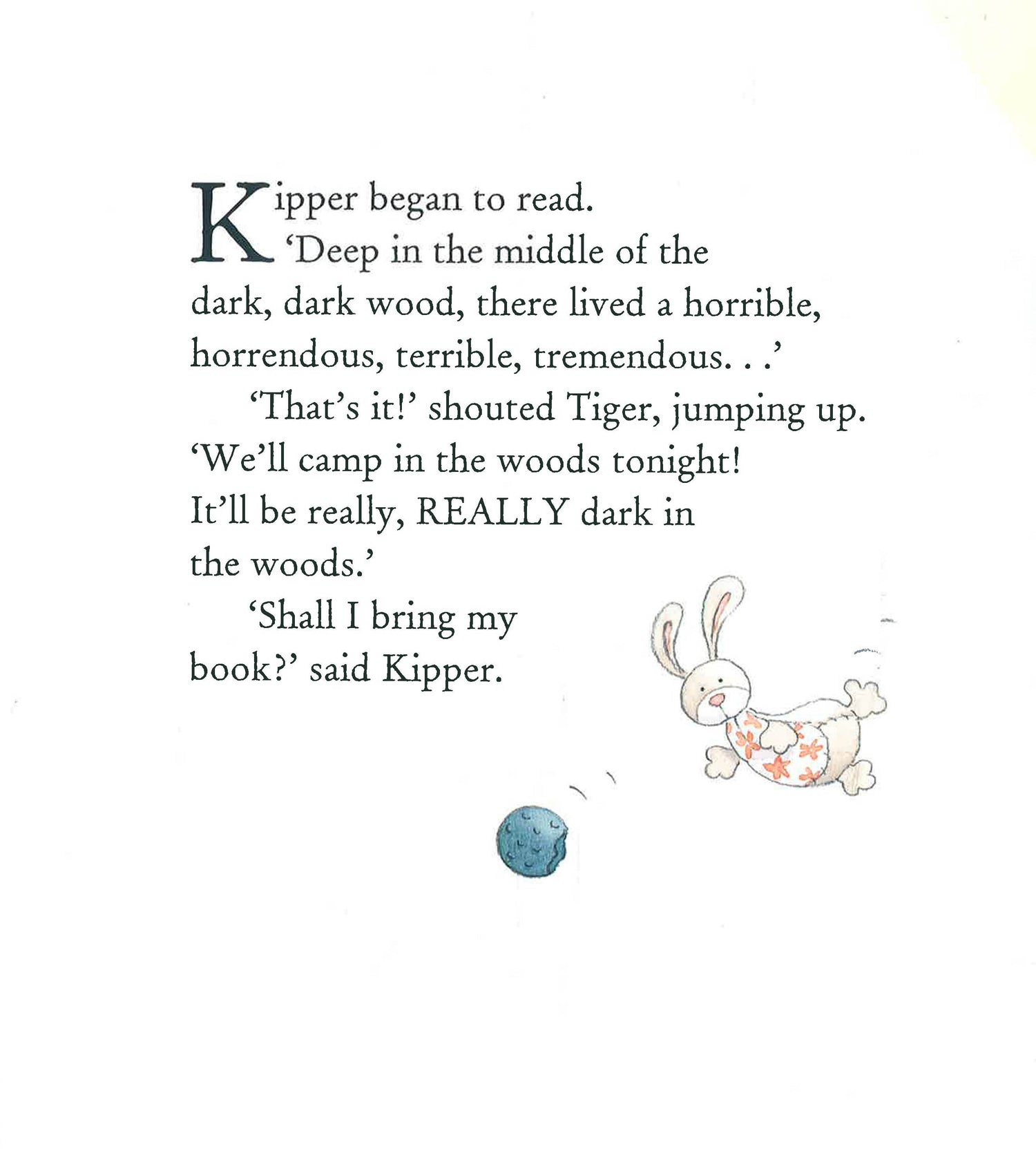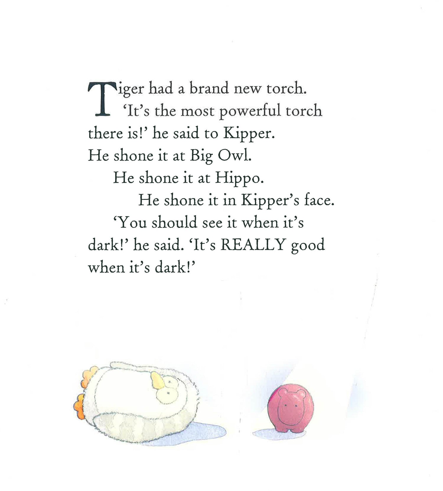 Kipper and his friend Tiger are going camping in the woods. Tiger has a brand-new torch and Kipper has a storybook. Hopefully there aren't any monsters around.