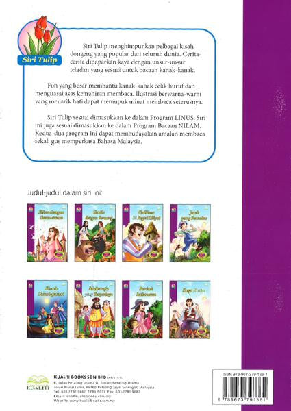Siri Tulip menghimpunkan pelbagai kisah dongeng yang popular dari seluruh dunia. Cerita-cerita dipaparkan kaya dengan unsur-unsur teladan yang sesuai untuk bacaan kanak-kanak. Fon yang besar membantu kanak-kanak celik huruf dan menguasai asas kemahiran membaca. Illustrasi berwarna-warni yang menarik hati dapat memupuk minat membaca seterusnya.