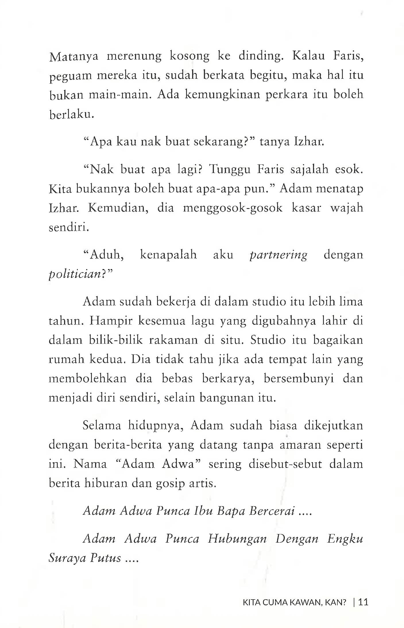 Yulia keliru. Adam takut berharap. Soalnya, adakah ia sesuatu yang pasti atau hanya mainan perasaan? Ini cinta, atau sekadar kawan?