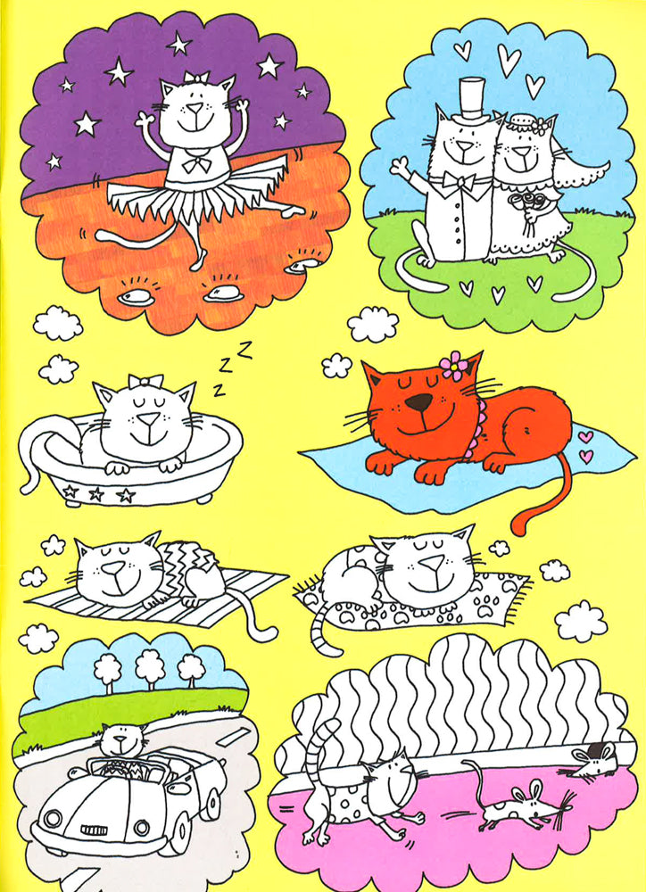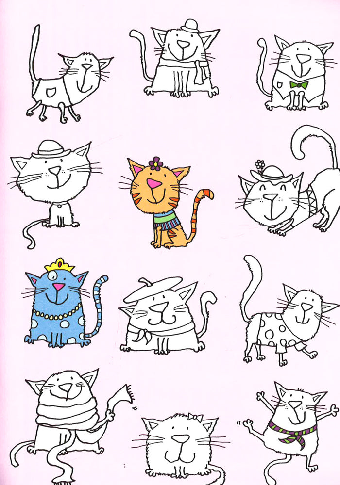 This cute colouring book is crammed with quirky illustrations of kittens and cats that kids will love to colour in. This cute colouring book is crammed with quirky illustrations of kittens and cats that kids will love to colour in! From kittens in knitwear and fashionable felines, to tree-climbing cats and pretty paw-print patterns, this book is the purrrr-fect purchase for creative kids and cat lovers alike.