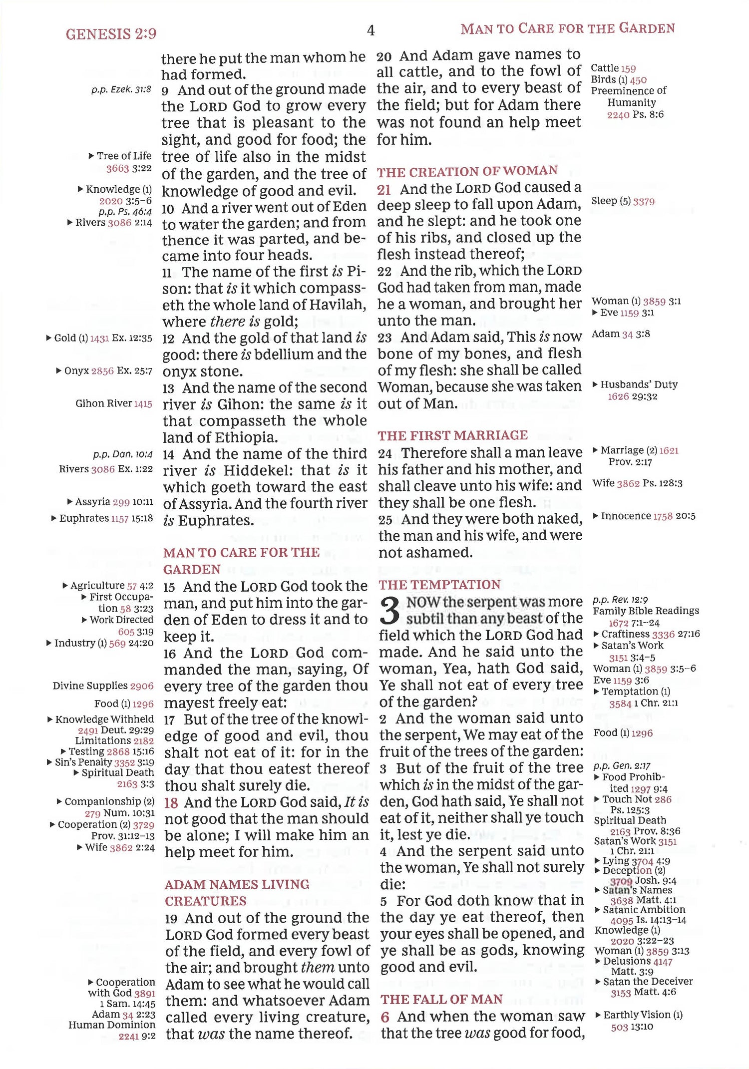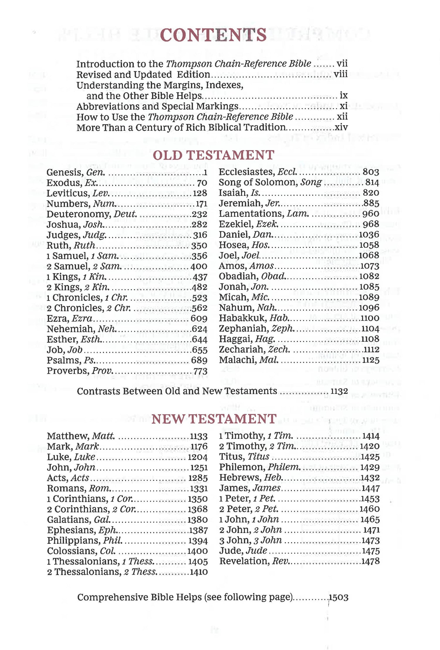 Beloved and acclaimed for more than five generations, the Thompson® Chain-Reference® Bible is unparalleled in its ability to enrich personal devotions, topical study, and sermon preparation. This unique reference Bible enables you to search the breadth of Scripture’s teachings on thousands of topics and allows you to follow those topics throughout the entire Bible. With over 100,000 references, covering over 8,000 topics, the chain-reference system is an ideal tool for comprehensive topical study. The Thompson Chain-Reference Bible also offers a library of additional study resources that allows readers to interpret the Bible using related scripture passages rather than consulting a commentary.