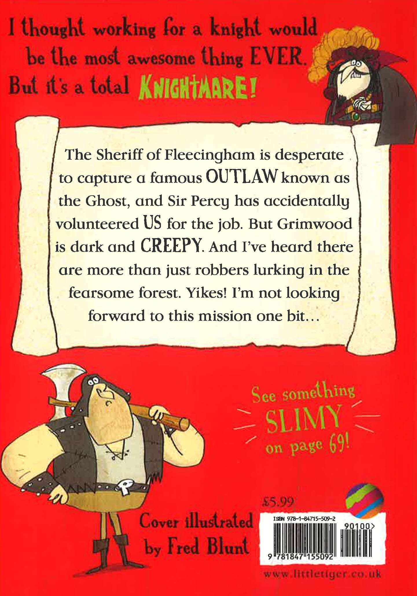 In Book 4 of the Knightmare series, a notorious outlaw is terrifying the locals and the king has ordered Sir Percy to track him down. Cedric and his master head off into the depths of Grimwood in search of the Ghost and his gang. But there are more than just robbers lurking in the fearsome forest... Yikes!