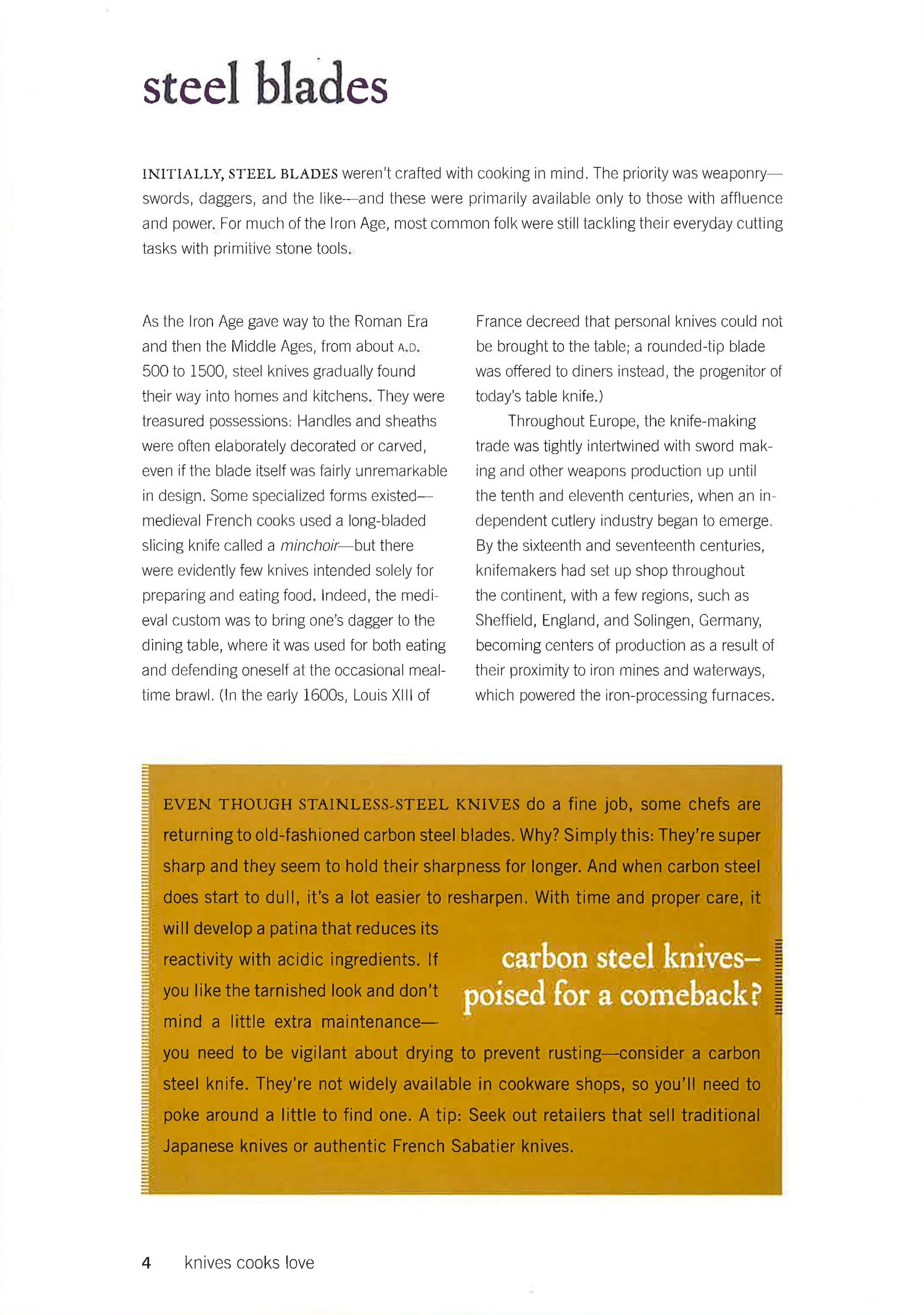 Get a knife that's balanced and weighted for you. There's no reason you shouldn't get fitted for a knife the way you get fitted for . . . a dress, a suit, or a pair of skis." -Tom Douglas, Seattle chef and restauranteur Sur La Table's "Knives Cooks Love" focuses on some of the most versatile tools in the kitchen-knives. "Knives Cooks Love" offers instructions on how to buy and care for knives, and how to properly chop, dice, and slice with them to create delicious dishes. Consider this Knives 101-lessons on everything you need to know to make your experiences behind the blade more straightforward, efficient, and enjoyable. In "Knives Cooks Love," trusted cookware authority Sur La Table teams up with writer Sarah Jay to guide chefs of all levels so their knives will last a lifetime. The nuances between knife blades and handles are discussed, as well as cutting surfaces and an array of sharpeners and honers. Numerous cutting techniques are also showcased with step-by-step instructions and photographs. These skills are then put to the test with more than 20 knife-essential, tantalizing recipes like Mango-Cucumber Salsa, Mediterranean-Style Mussels with Fennel and Tomatoes, Arroz con Pollo with Chorizo and Capers, and Bread and Butter Pudding with Rum and Crystallized Ginger. Readers will learn what to look for when purchasing quality knives, the best culinary uses for each knife variety, as well as how to properly clean and store them. With sidebar advice from renowned chefs, including tips, tricks, and notes on their favorite knives, "Knives Cooks Love" is the ultimate guide to choosing and using the most important tool in the kitchen.