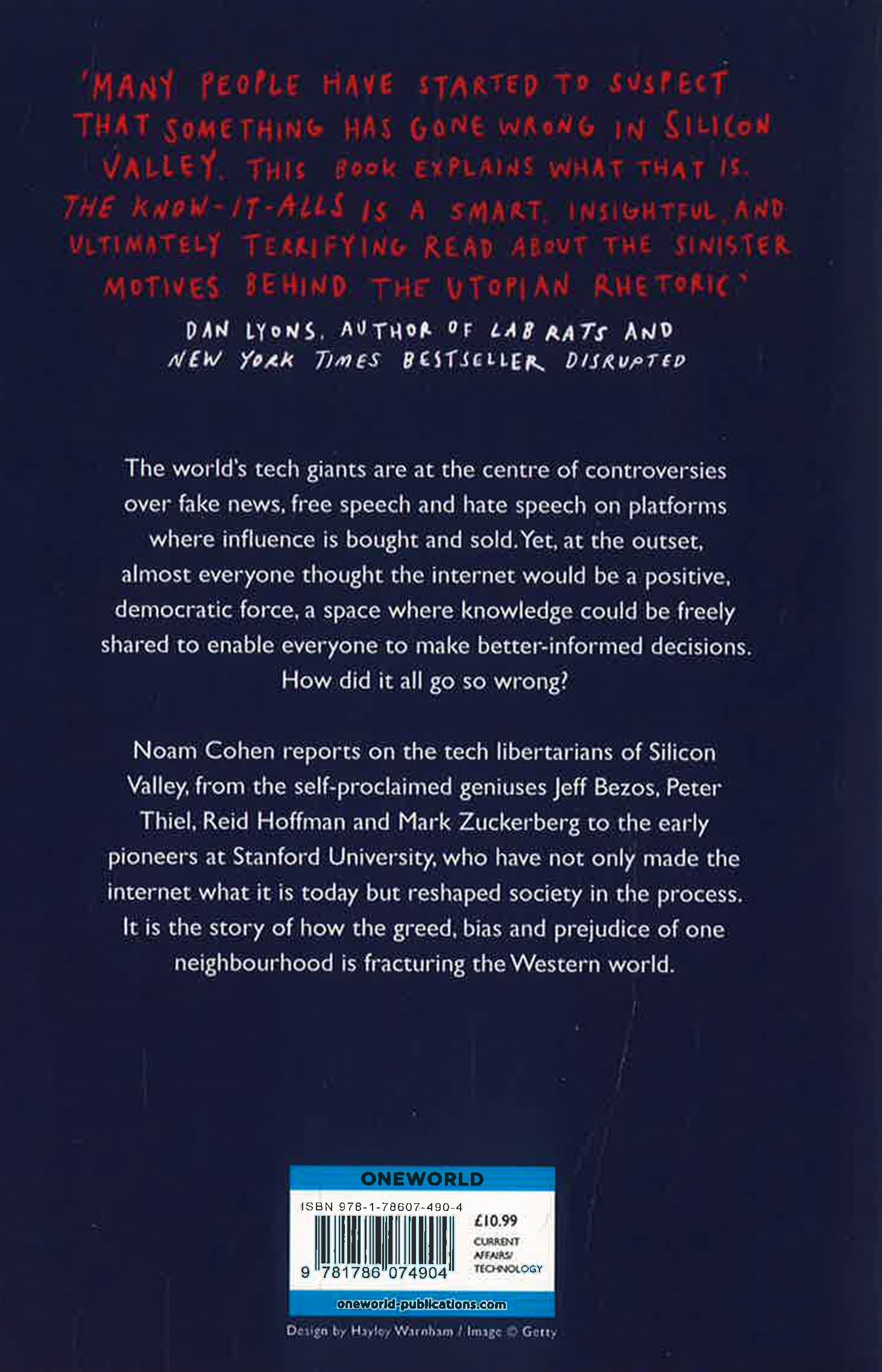 The world's tech giants are at the centre of controversies over fake news, free speech and hate speech on platforms where influence is bought and sold. Yet, at the outset, almost everyone thought the internet would be a positive, democratic force, a space where knowledge could be freely shared to enable everyone to make better-informed decisions. How did it all go so wrong? Noam Cohen reports on the tech libertarians of Silicon Valley, from the self-proclaimed geniuses Jeff Bezos, Peter Thiel, Reid Hoffman and Mark Zuckerberg to the early pioneers at Stanford University, who have not only made the internet what it is today but reshaped society in the process. It is the story of how the greed, bias and prejudice of one neighbourhood is fracturing the Western world.