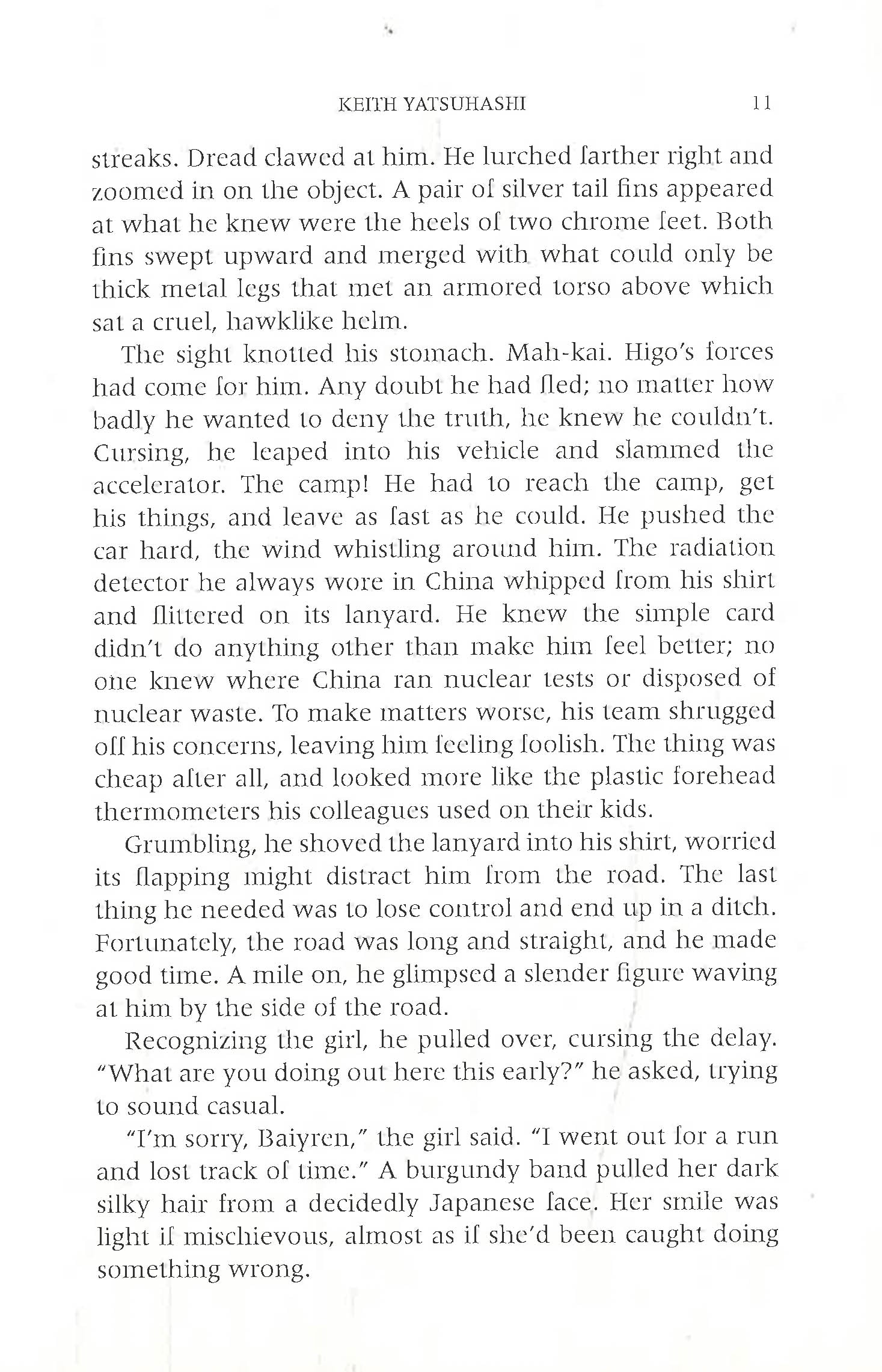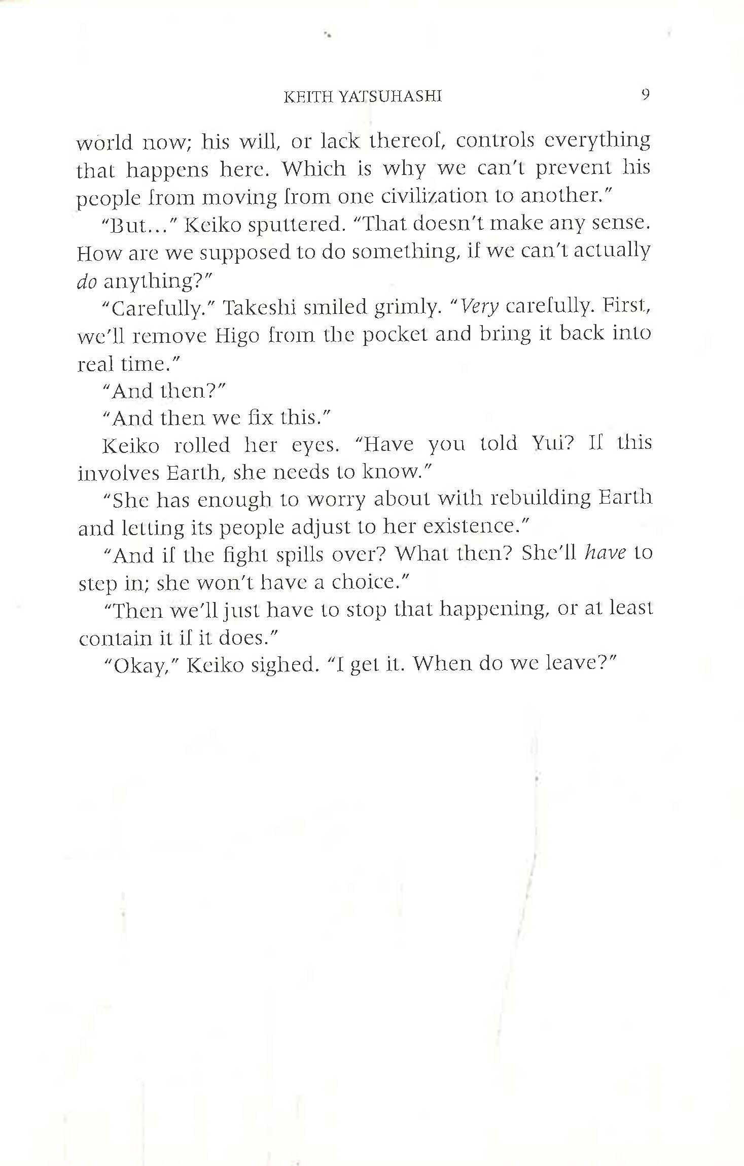On the planet of Higo, without the guidance of the Great Spirits, its people are descending into religious civil war. Baiyren Tallaenaq, Prince of Higo, is exiled after causing the death of his mother. Freed from his responsibilities and the looming war, he steals their greatest weapon - a giant, sentient, armoured suit - and uses it to open a Portal to a world he never knew existed. A world called "Earth"... home of a magical young woman called Keiko.