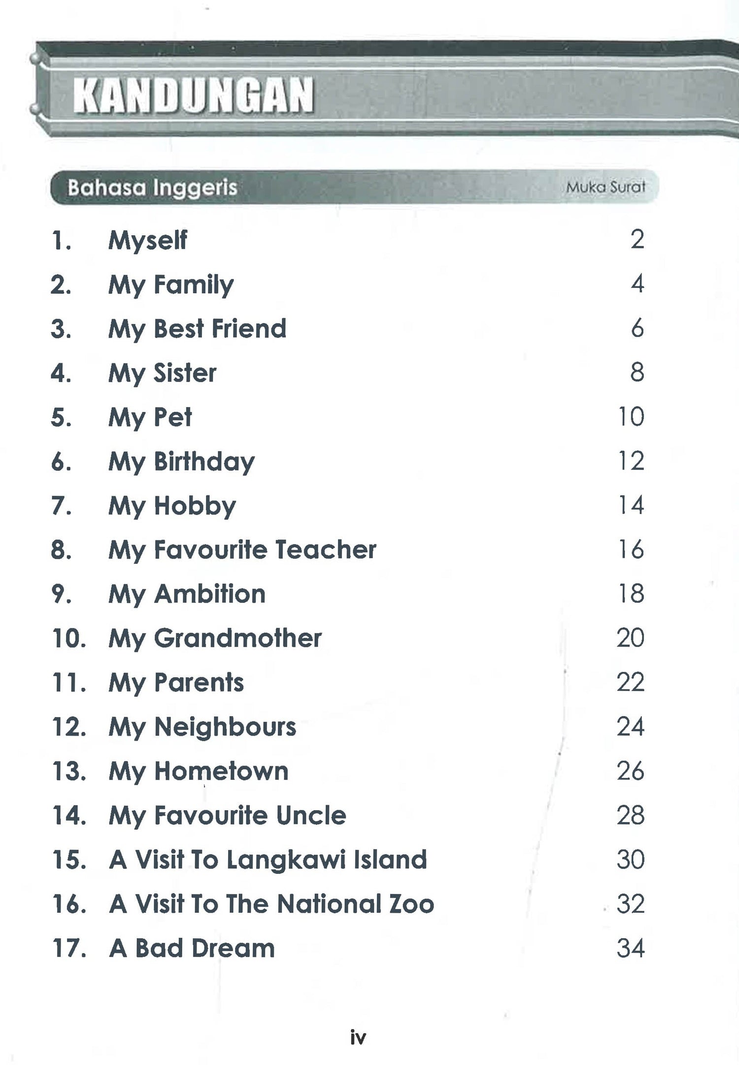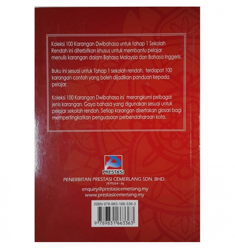 This bilingual educational book is especially designed to help Primary School students sitting for exams to write better English and Bahasa Malaysia essays. There are 100 different types of essay samples in this book that can act as a source of reference for exam-sitters during classes or even as a self-study guide. The writing style in this book is suitable for Lower Secondary Primary School students. Every essay in this book is accompanied by a glossary of words to further enhance the vocabulary of the readers.