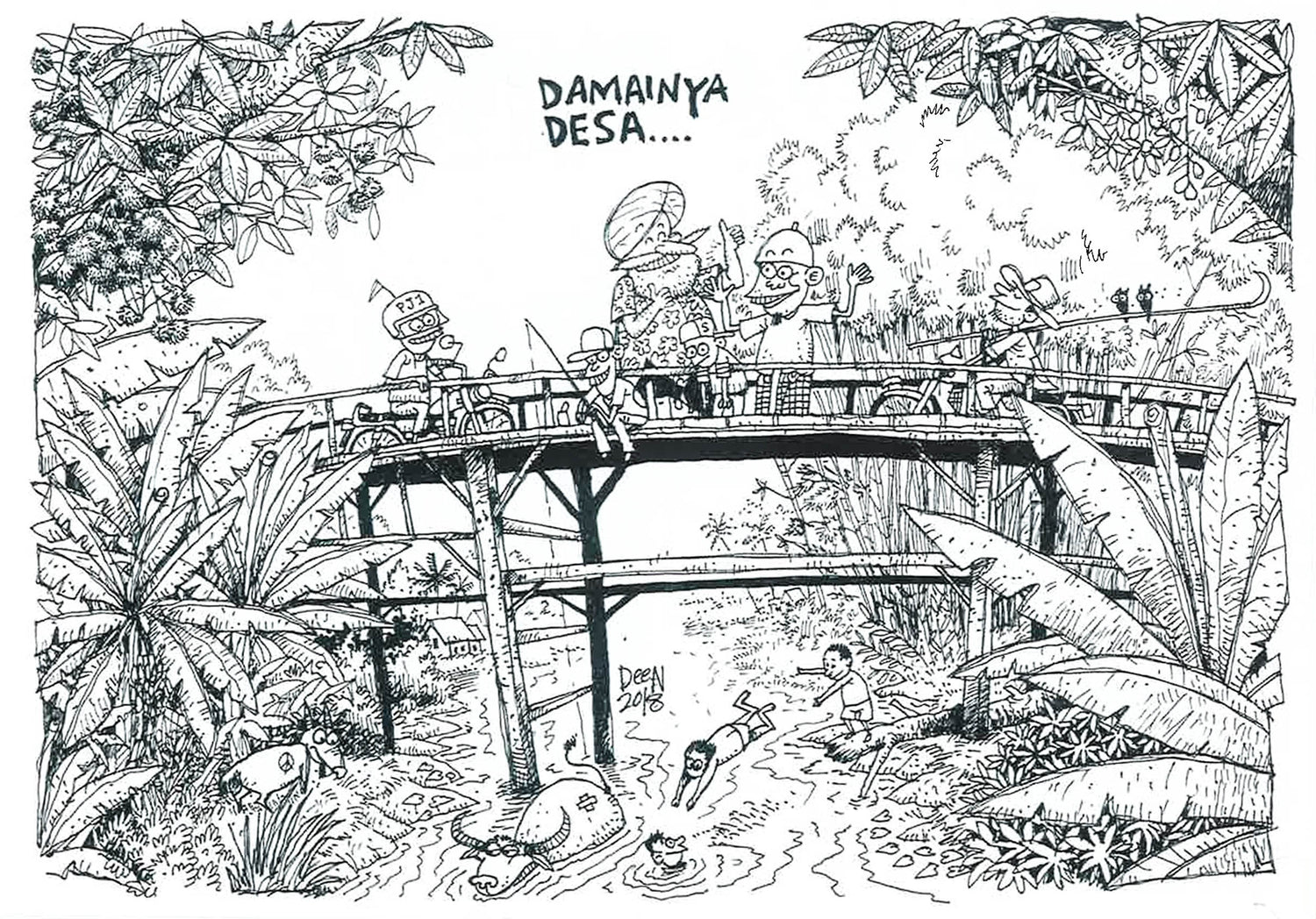 “Deen, seorang kartunis yang sangat mahir bermain dengan pen dan dakwat. Karya-karya beliau padat dengan sentuhan yang di luar kotak pemikiran. Ketelitian beliau dalam melakar dan menggarap idea sering menampakkan perbezaan dengan kartunis-kartunis lain. Tidak hairan, Deen dianggap sifu oleh kartunis-kartunis yang lahir di era 90-an dan 2000-an.
