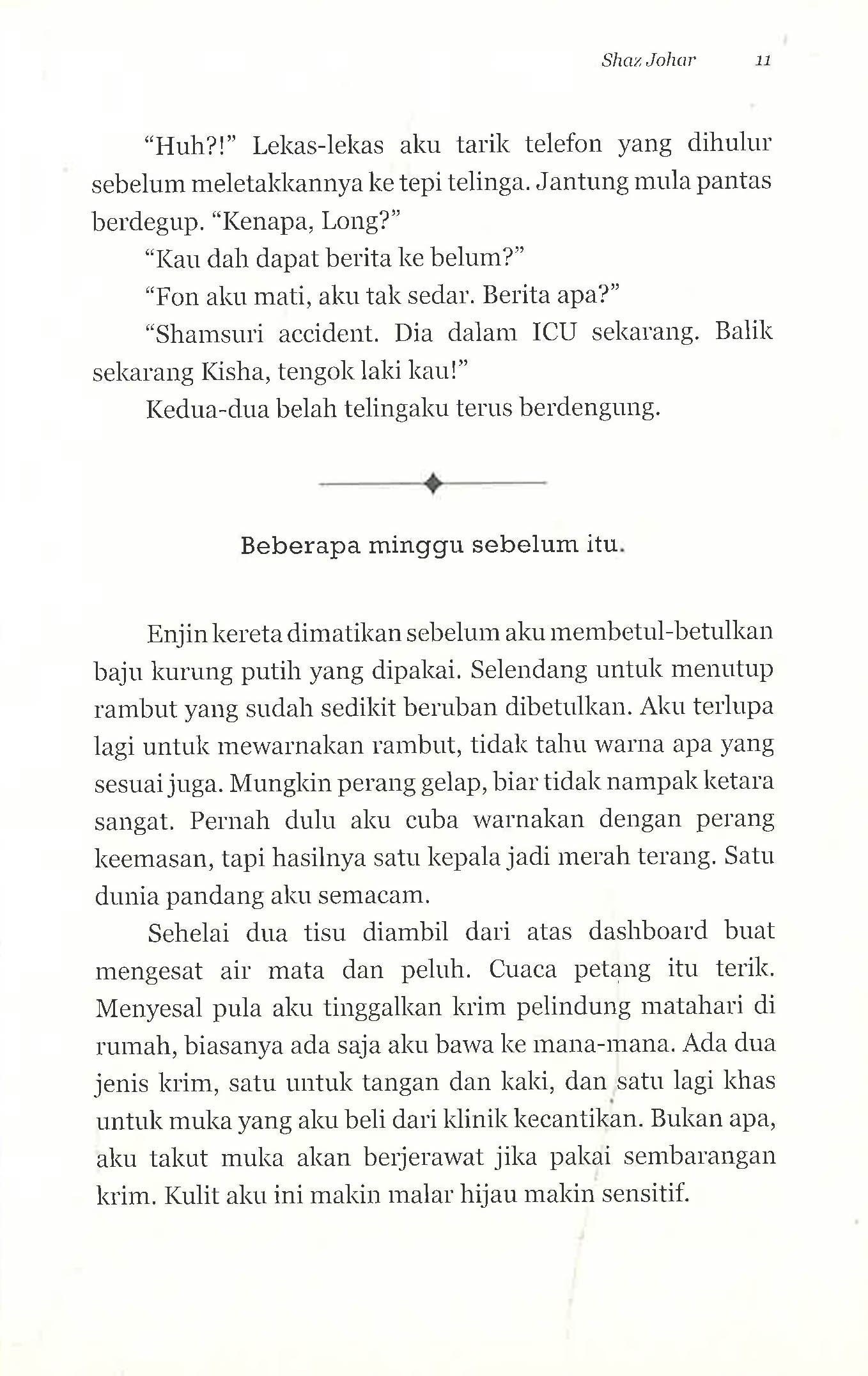 Aku lebih suka pada lelaki yang berkulit cerah sebenarnya, tapi melihat pada lelaki ini aku sanggup buat pengecualian. Lagipun orang kata kopi hitam itu yang biasanya buat kita susah tidur, bukan? – Kisha.