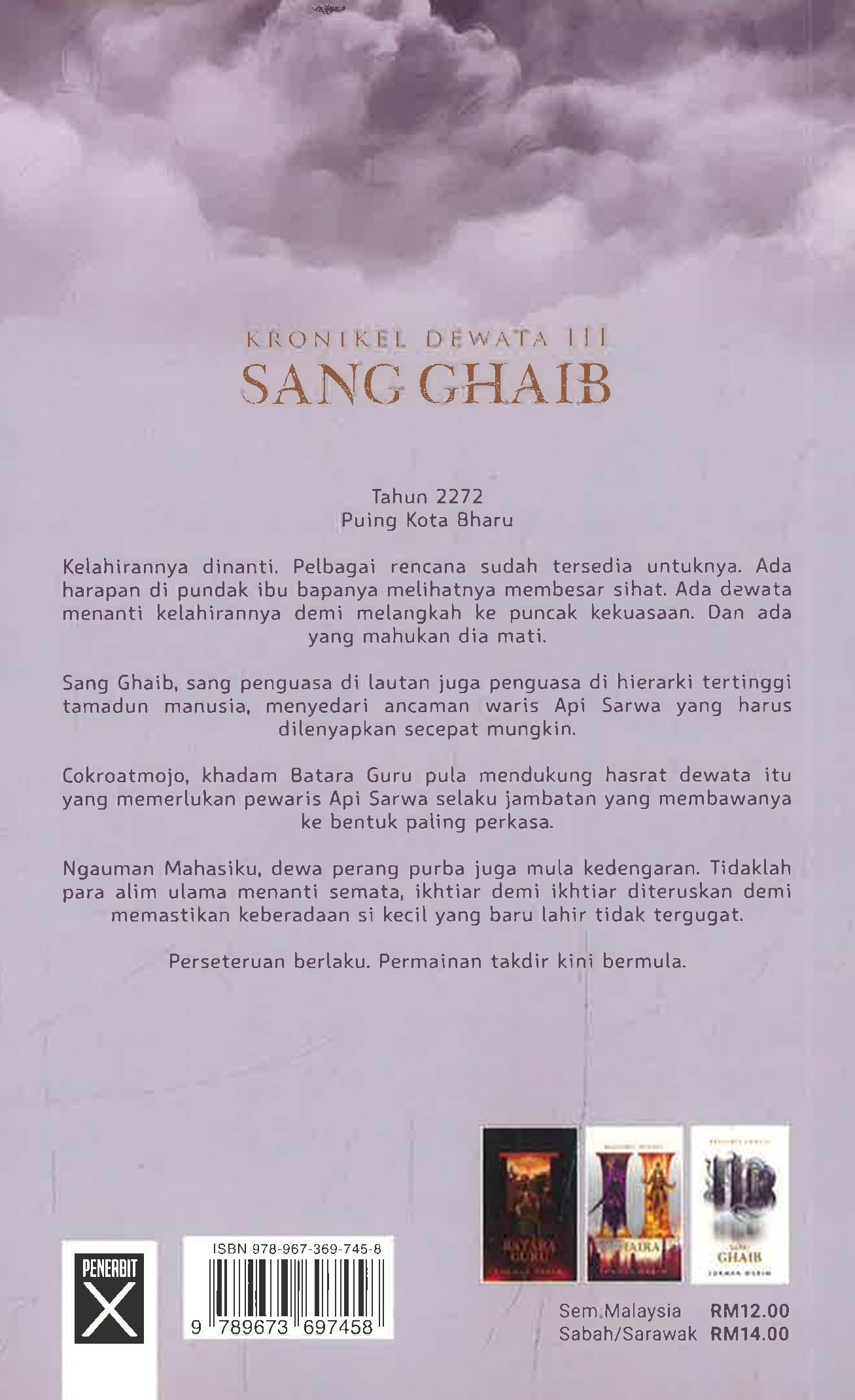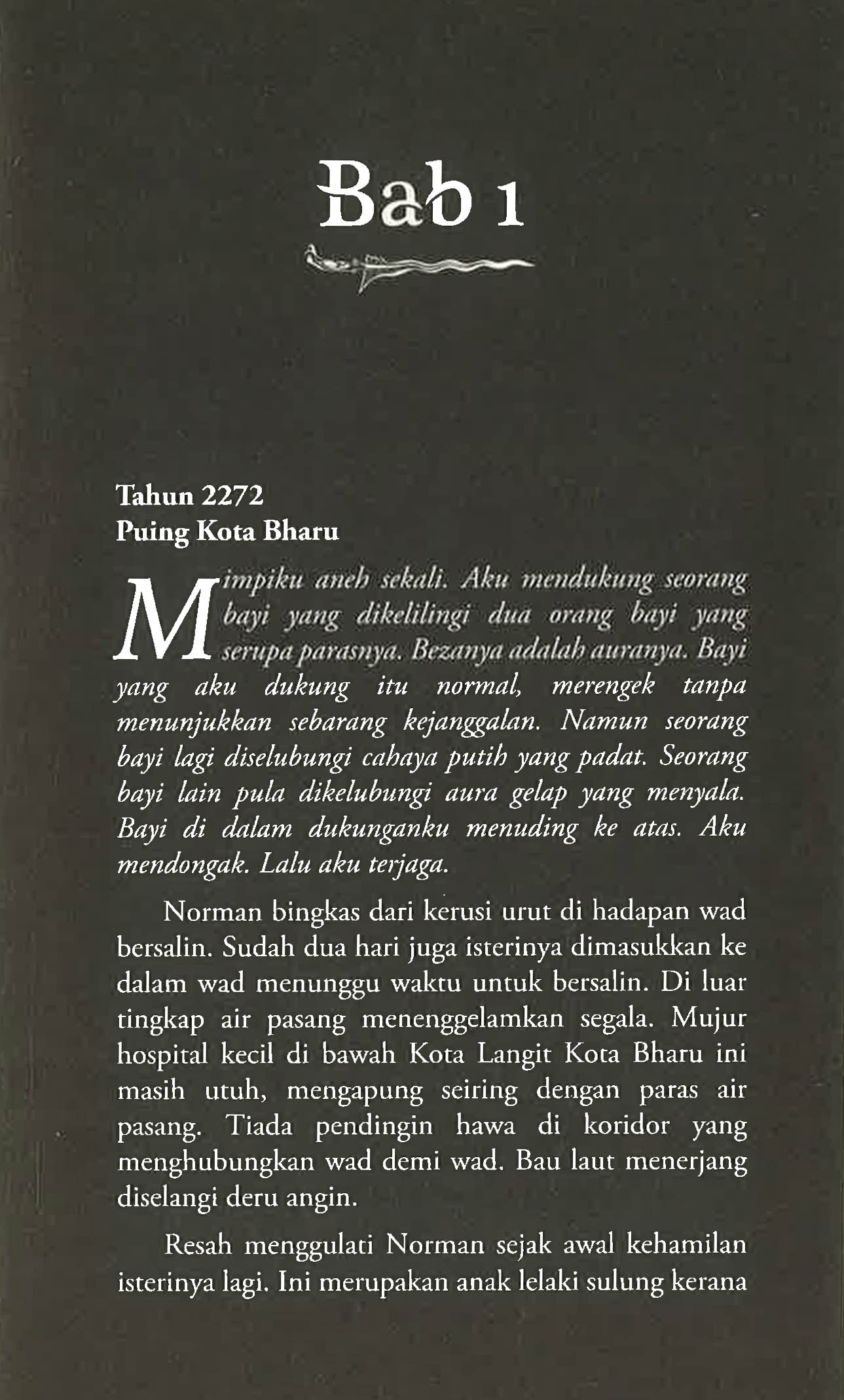 Tahun 2272 Puing Kota Bharu Kelahirannya dinanti. Pelbagai rencana sudah tersedia untuknya. Ada harapan di pundak ibu bapanya melihatnya membesar sihat. Ada dewata menanti kelahirannya demi melangkah ke puncak kekuasaan. Dan ada yang mahukan dia mati. Sang Ghaib, sang penguasa di lautan juga penguasa di hierarki tertinggi tamadun manusia, menyedari ancaman waris Api Sarwa yang harus dilenyapkan secepat mungkin. Cokroatmojo, khadam Batara Guru pula mendukung hasrat dewata itu yang memerlukan pewaris Api Sarwa selaku jambatan yang membawanya ke bentuk paling perkasa. Ngauman Mahasiku, dewa perang purba juga mula kedengaran. Tidaklah para alim ulama menanti semata, ikhtiar demi ikhtiar diteruskan demi memastikan keberadaan si kecil yang baru lahir tidak tergugat. Perseteruan berlaku. Permainan takdir kini bermula.