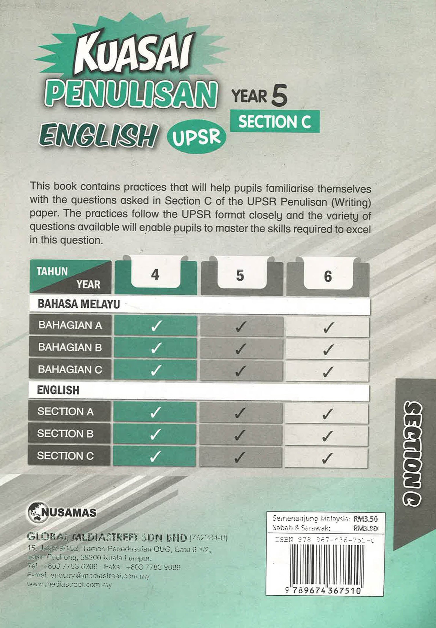 This book contains practices that will help pupils familiarise themselves with the questions asked in Section of the UPSR Penulisan (Writing) paper. The practices follow the UPSR format closely and the variety of questions available will enable pupils to master the skills required to excel in this question.
