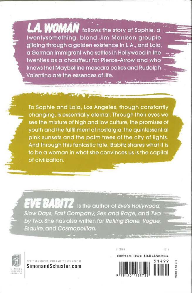 Soon to be a TV show on Hulu Eve Babitz is a writer like no other--she "is to prose what Chet Baker is to jazz" (Vanity Fair)--and she has influenced a generation of writers and readers with her sophisticated, witty, and delightful work. L.A. Woman is quintessential Babitz, the story of Sophie, a twenty-something blonde Jim Morrison groupie gliding through a golden existence in L.A. and Lola, a German immigrant who settles in Hollywood in the twenties to drive Pierce Arrows recklessly down Sunset Boulevard and who knows that Maybelline mascara cakes and Rudolph Valentino are the essence of life. Sophie and Lola, like the many other women who move in and out of this electric saga know that while L.A. is constantly changing it is essentially eternal; through their eyes we see the mixture of high culture and low, the promises of youth and the fulfillment of nostalgia, the pink sunsets and the palm trees that are L.A. And through this fantastic tale, Babitz shares what it is to be a woman in what she convinces us is the capital of civilization. *This book may have remainder mark*