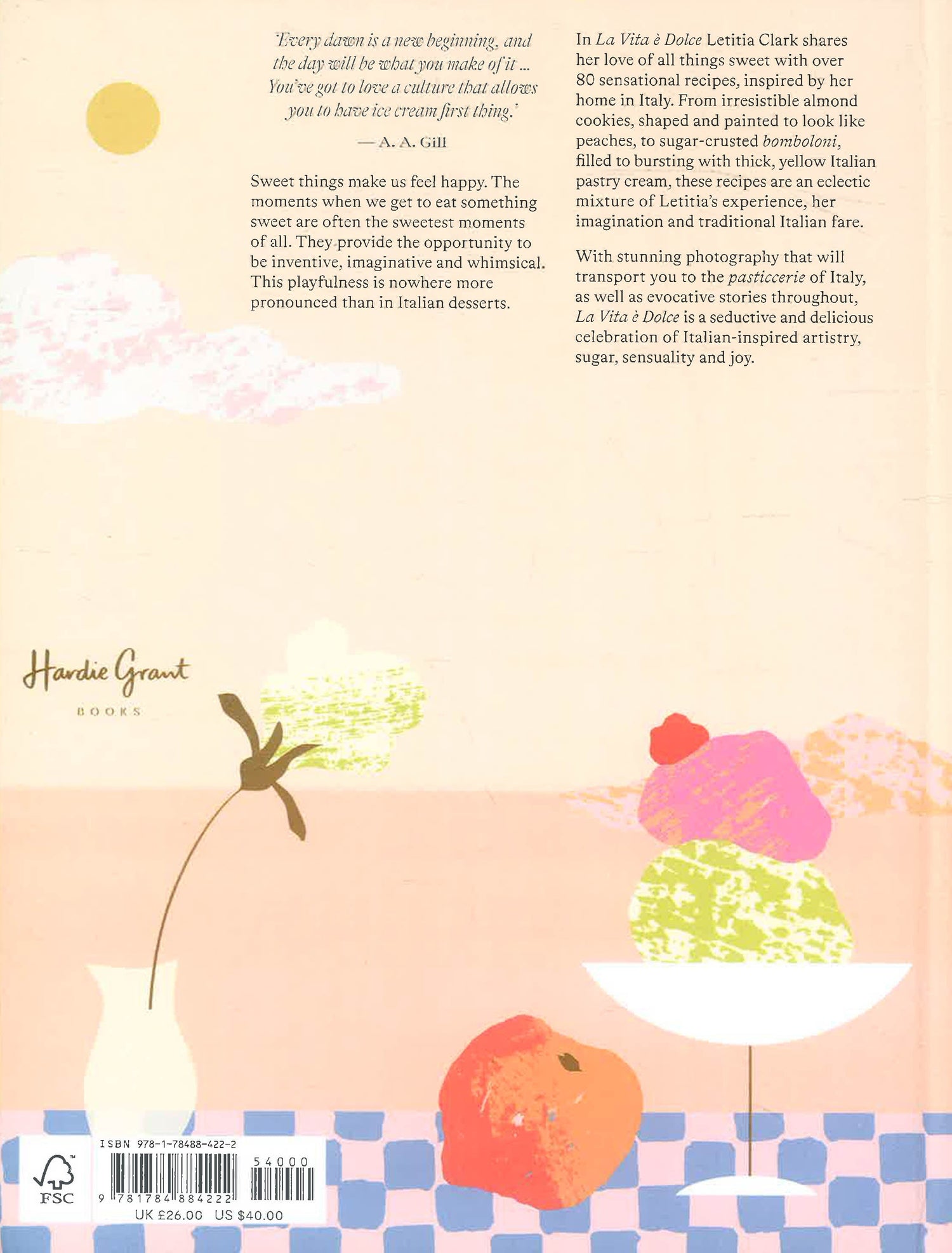La Vita e Dolce is an exciting take on Italian baking by food writer and trained pastry chef, Letitia Clark. Featuring over 80 Italian desserts, Dolce showcases Letitia's favorite recipes inspired by her time living in Sardinia. Whether you're looking for something fruity, nutty, creamy, chocolatey or boozy, you will be seduced by the sweet aromas of every bake. Complete with anecdotes and beautiful location photography throughout, each recipe will be authentic in taste but with a delicious, contemporary twist. From a joyful Caramelized Citrus Tart to a classic Torta Caprese, this is a stunning celebration of the sweet things in life, and is guaranteed to bring a slice of Italy into your home.