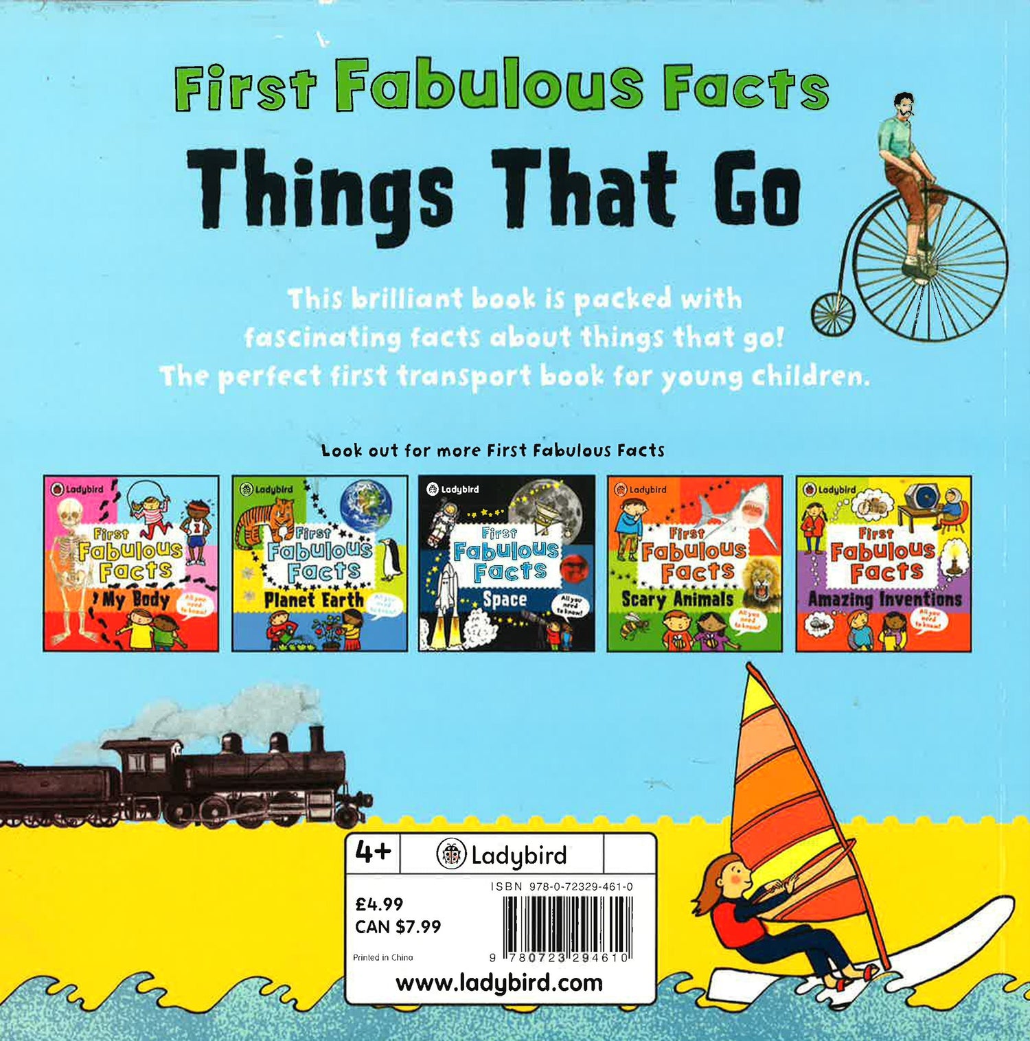 First Fabulous Facts is an illustrated non-fiction series for 3-5 year olds. Fun and fascinating facts engage young children and bring their favourite interests, hobbies and obsessions to life. Things That Go looks at the exciting world of vehicles and machines from the Penny Farthing bicycle and the first motor car, to Formula One racing cars and space planes for tourists. Find out about a bicycle that seats 40 people and the fastest train in the world. Perfect for machine-mad little learners!