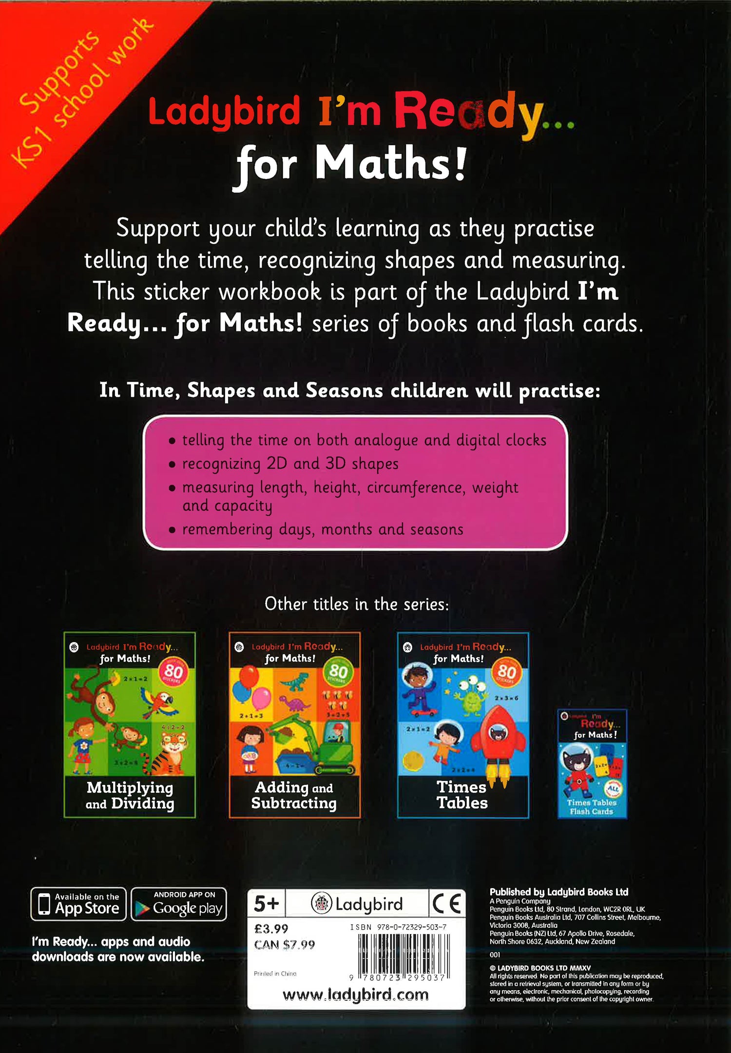 Time, Seasons and Weather a is a bright, motivating sticker workbook that is part of Ladybird's I'm Ready for Maths series. Written by experienced maths teachers, it covers essential everyday mathematical concepts that children will be learning in school during Key Stage 1, including telling the time in both digital and analogue forms, 2D and 3D shapes, length, money, seasons, months and days of the week.