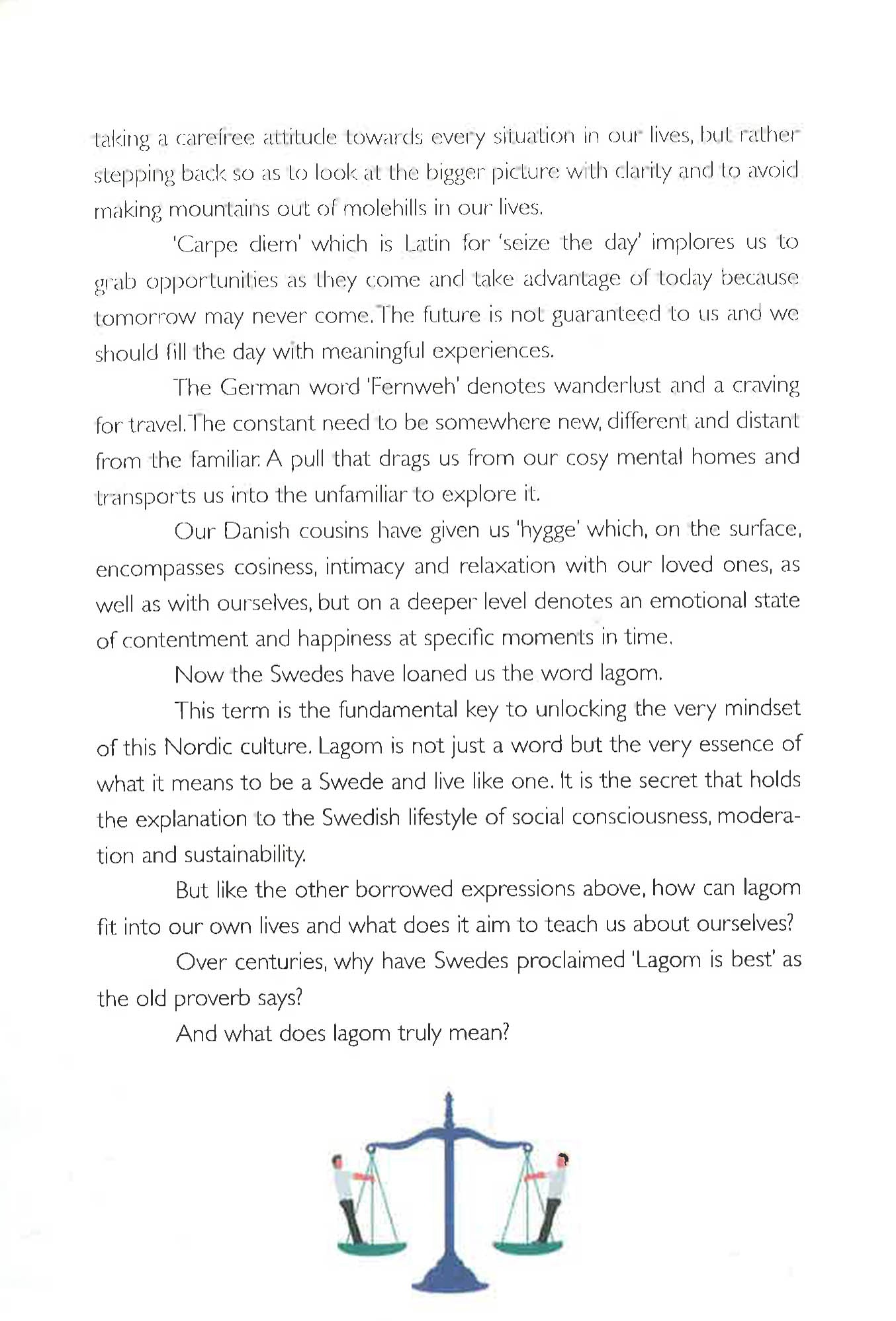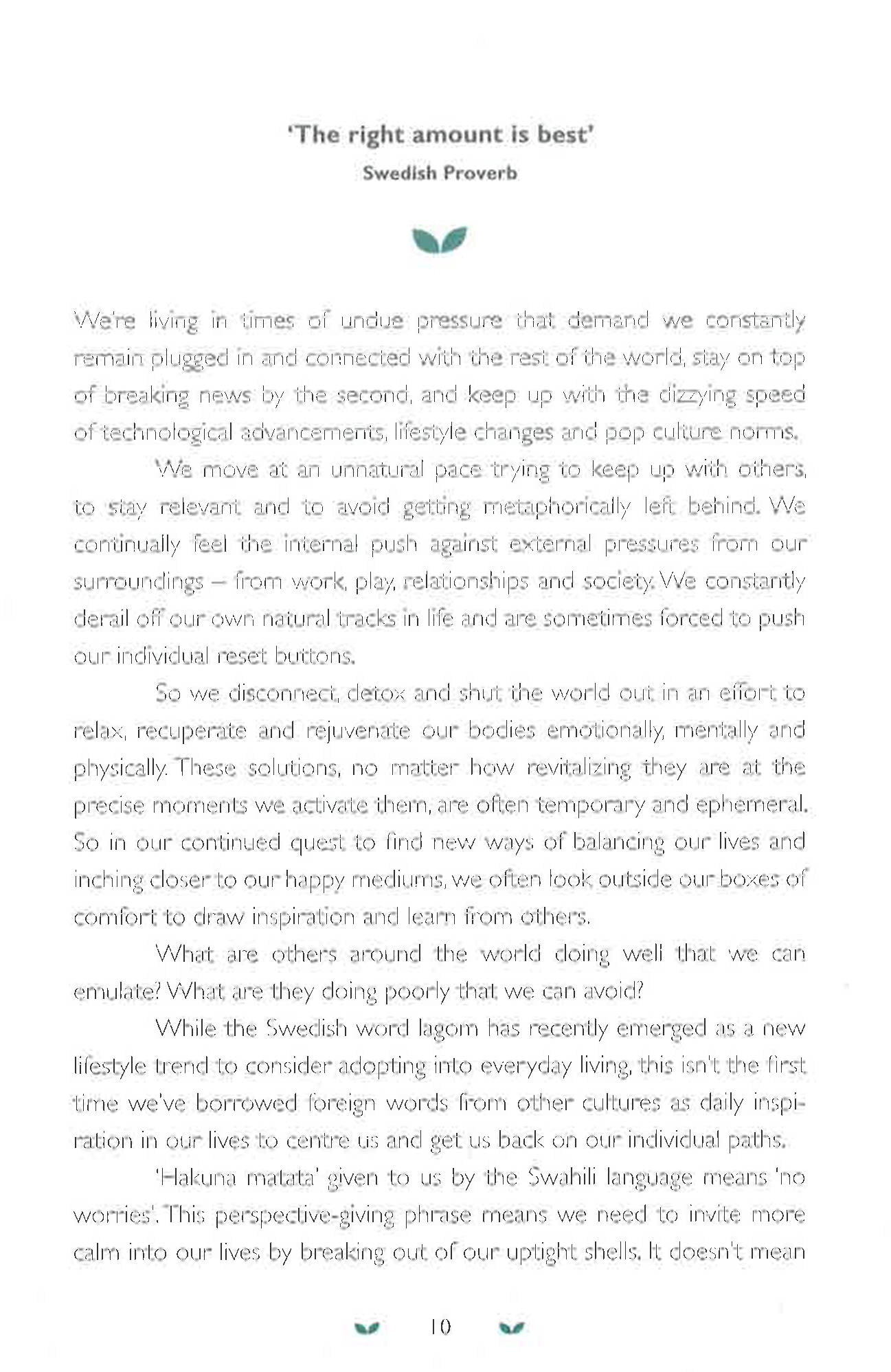Perfect for fans of The Little Book of Hygge and Norwegian Wood, find the balance in life that is just right for you. Let Lola A. Akerstroem, Editor-in-chief of Slow Travel Stockholm, be your companion to all things lagom.As the Swedish proverb goes, 'Lagom ar bast' (The right amount is best). Lagom sums up the Swedish psyche and is the reason why Sweden is one of the happiest countries in the world with a healthy work-life balance and high standards of living.Lagom is a way of living that promotes harmony. It celebrates fairness, moderation and being satisfied with and taking proper care of what you've got, including your well-being, relationships, and possessions. It's not about having too little or too much but about fully inviting contentment into our lives through making optimal decisions.Who better than Lola A. Akerstroem to be your lagom guide? Sweden-based Lola is an award-winning writer, photographer , and editor-in-chief of Slow Travel Stockholm and she offers us a unique vantage point when it comes to adopting elements of a lagom lifestyle.Full of insights and beautiful photographs, taken by Lola herself, this authentic book will help you make small, simple changes to your every day life - whether that's your diet, lifestyle, money, work or your home - so you can have a more balanced way of living filled with contentment.