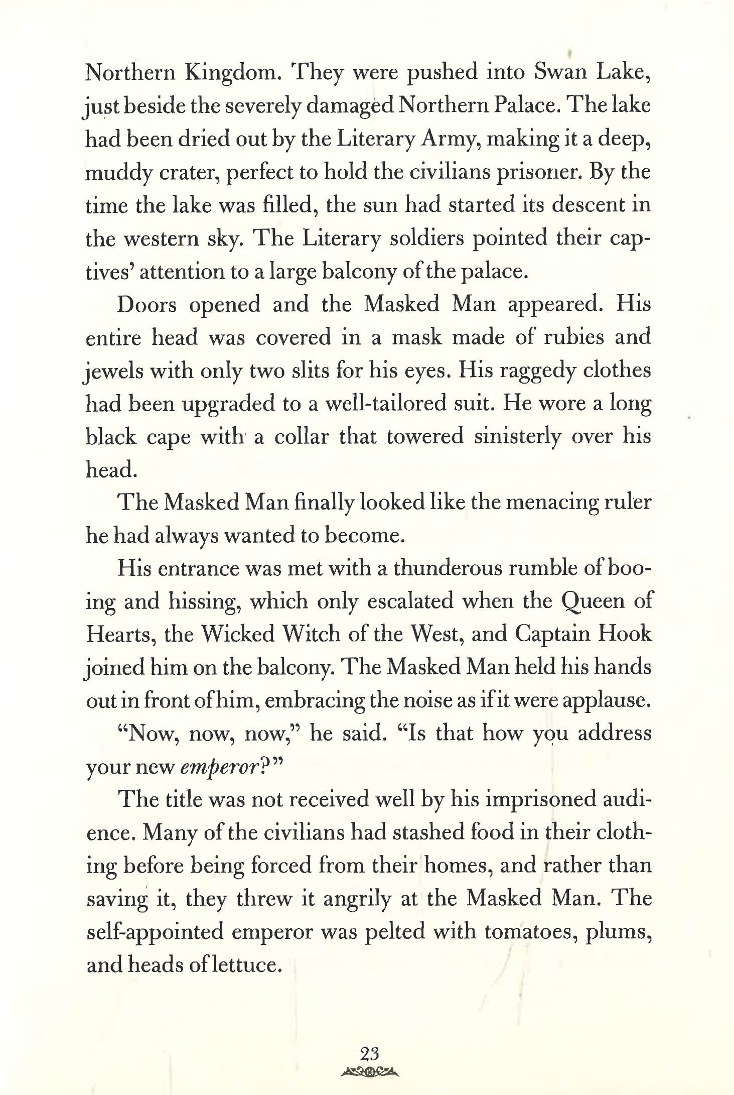 The Masked Man has captured all the royal families from the Land of Stories with the help of his army of literature's greatest villains, including the Wicked Witch of the West, the Queen of Hearts, and Captain Hook. With his sinister plan finally in motion, he is eager to destroy the families and take his place as emperor.