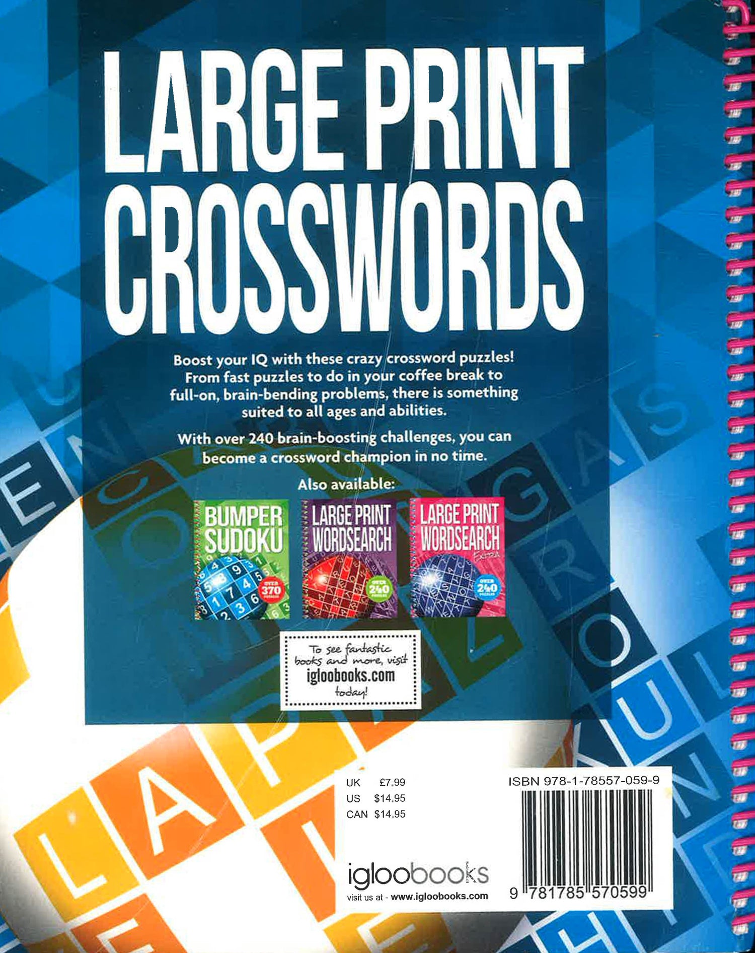 Engage your brain and test your knowledge with this bumper pack of Large Print Crosswords.