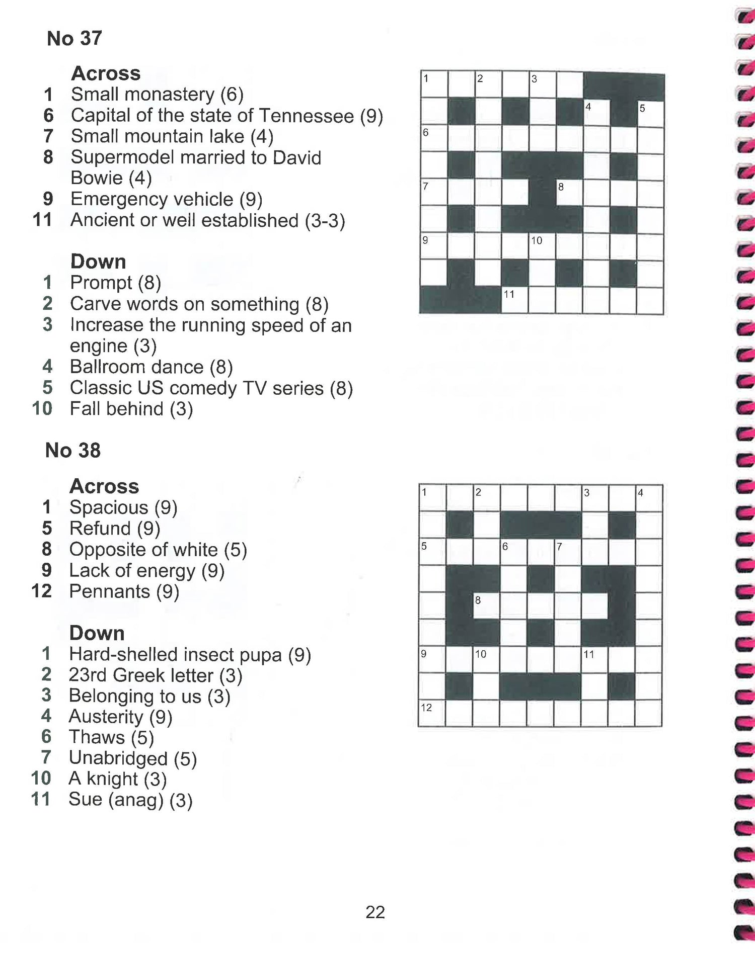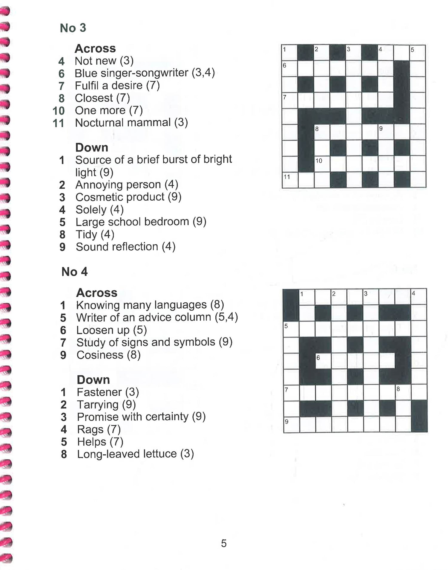 Full of challenging clues to solve and grids to complete, this book of crossword puzzles is sure to keep you mentally stimulated for hours.