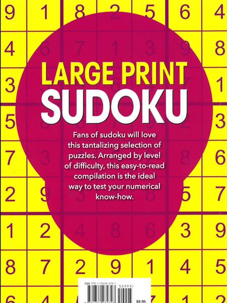 Easy to read, large print sudoku puzzles in a great format. Over 100 puzzles with a range of levels to amuse, challenge and puzzle the mind of the avid sudoku puzzler.