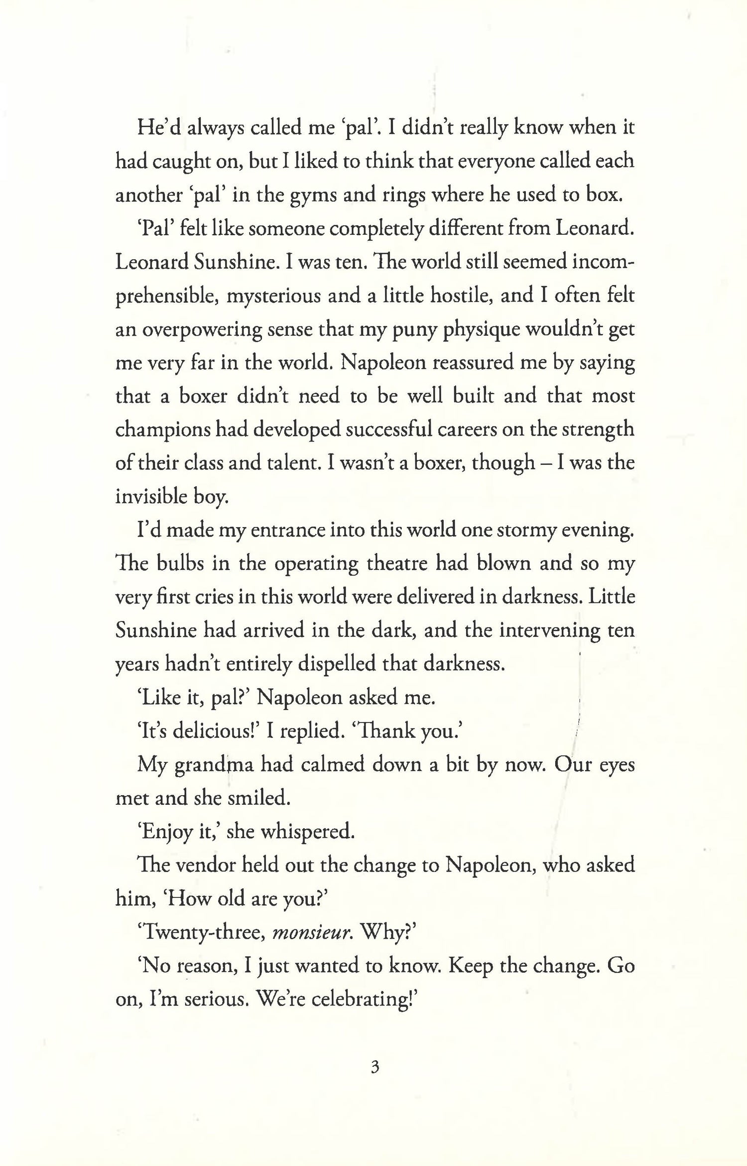 At the age of eighty-five my grandfather Napoleon decided he needed to try something new . . . Everything starts to go south when Napoleon leaves his wife. At eighty-five, a former boxer with a restless, youthful spirit, Napoleon decides to say to hell with it all! He wants a new life. Determined to rebel against everything that takes the fun out of life, Napoleon embarks on a moving adventure with his ten-year-old grandson Leonard Sunshine in tow. The chaotic duo adopt a dog, drive a fake taxi, escape to the seaside, sabotage door-to-door salesmen and plot to kidnap a famous radio star. Above all, Leonard is determined to spare his grandfather the fate of the elderly - spending his final years exiled in a retirement home. From the heart of Paris to the coast of Normandy, The Last Adventure of Napoleon Sunshine is a moving, life-affirming and melancholy tale of new beginnings and the importance of family. Perfect for fans of A Man Called Ove, The Keeper of Lost Thing and The Little Paris Bookshop.