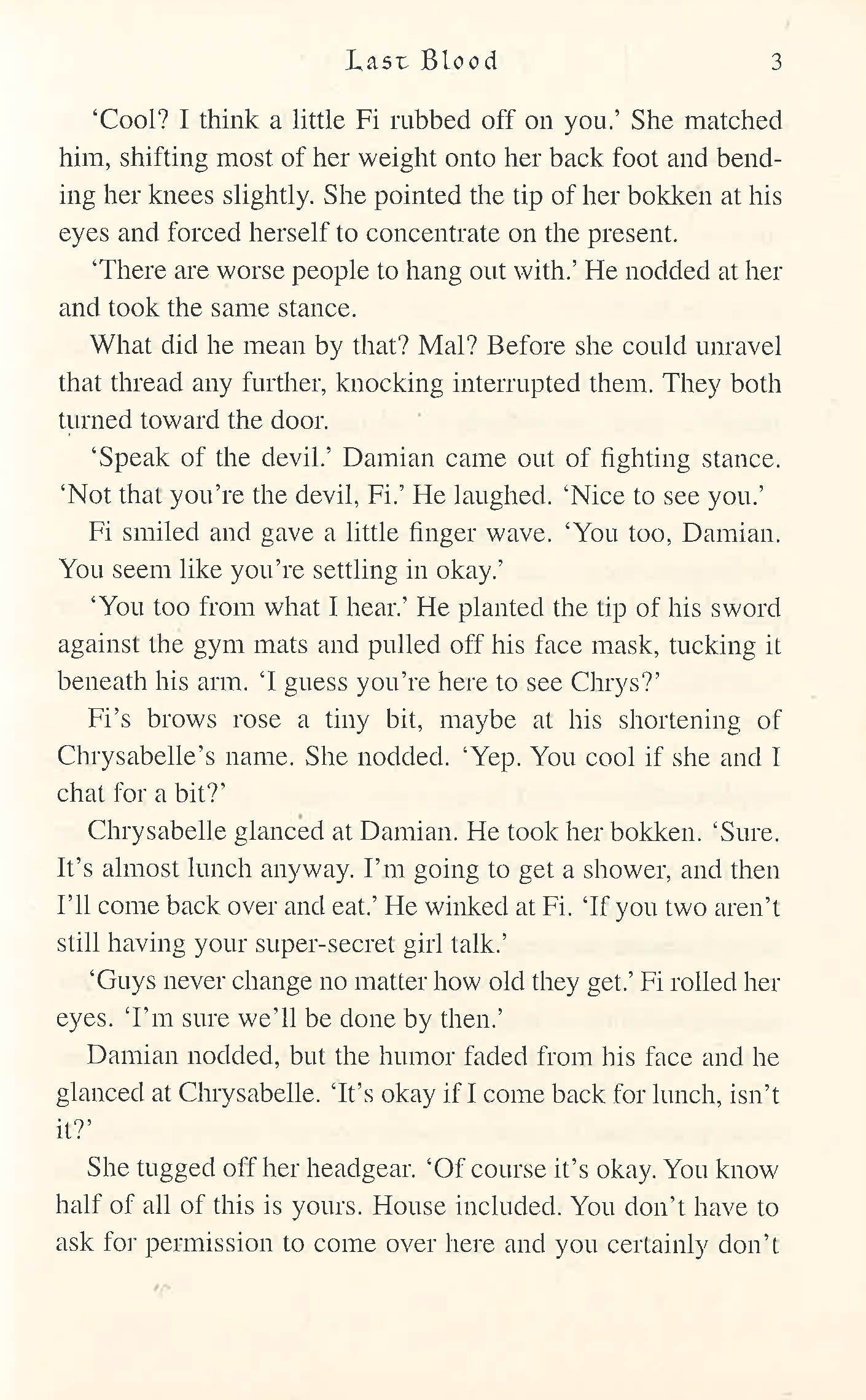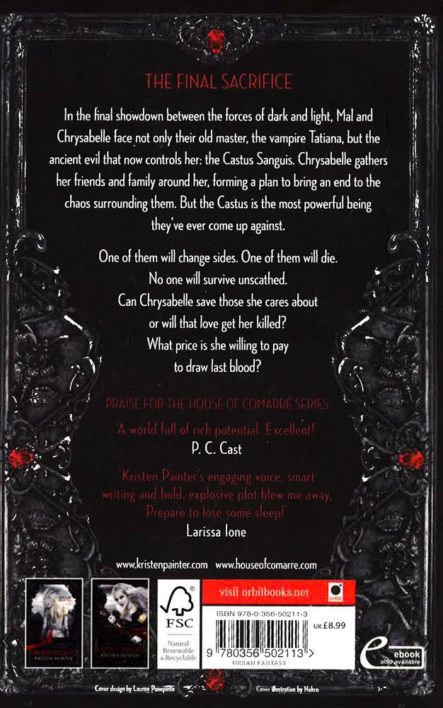 In the final showdown between the forces of dark and light, Mal and Chrysabelle face not only their old master, the vampire Tatiana, but the ancient evil that now controls her: the Castus Sanguis. Chrysabelle gathers her friends and family around her, forming a plan to bring an end to the chaos surrounding them. But the Castus is the most powerful being they've ever come up against. Defeating such evil will require a great sacrifice from someone on the side of light. One of them will change sides. One of them will die. No one will survive unscathed. Can Chrysabelle save those she cares about or will that love get her killed? What price is she willing to pay to draw last blood?