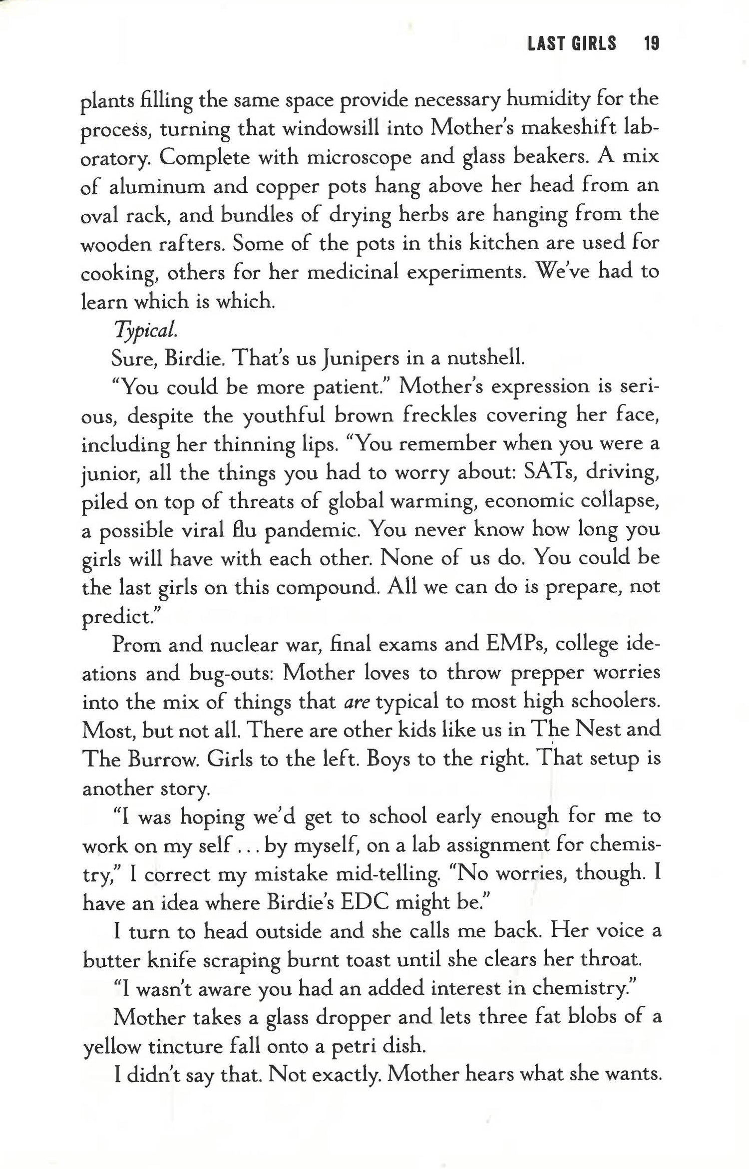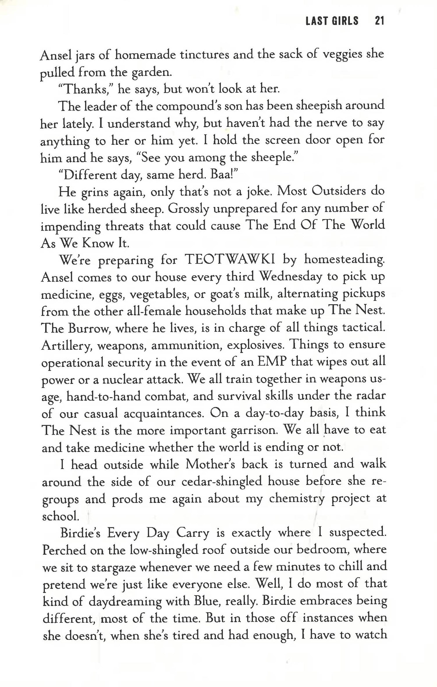 Demetra Brodsky's Last Girls is a twisting, suspenseful YA thriller about sisterhood, survival, and family secrets set in the world of doomsday prepping.