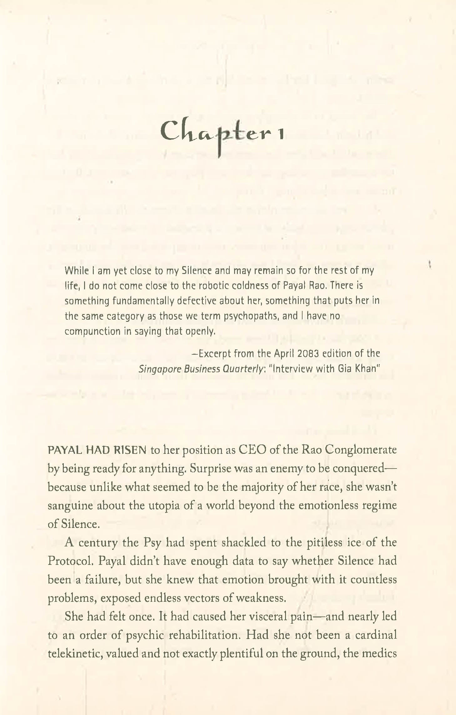 Termed merciless by some, and a robotic sociopath by others, Payal Rao is the perfect Psy: cardinal telekinetic, CEO of a major conglomerate, beautiful - and emotionless.