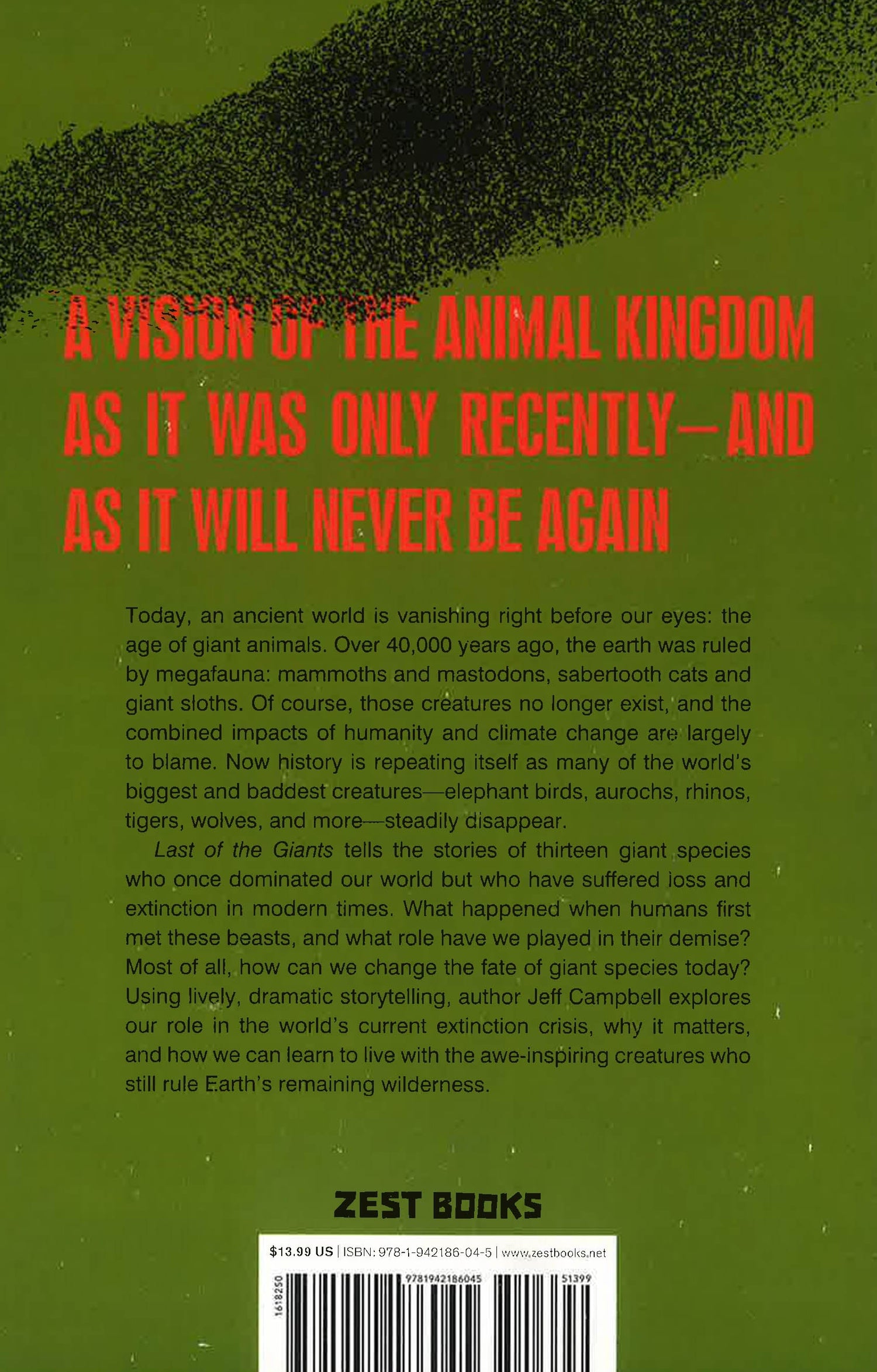 Today, an ancient world is vanishing right before our eyes: the age of giant animals. Over 40,000 years ago, the earth was ruled by megafauna: mammoths and mastodons, saber-toothed tigers and giant sloths. Of course, those creatures no longer exist, due to the evolution and arrival of the wildly adaptive human species, among other factors. Many more of the world's biggest and baddest creatures - including the black rhino, the dodo, giant tortoises, and the great auk - have vanished since our world became truly global. Last of the Giants chronicles those giant animals and apex predators who have been pushed to extinction in the modern era.
