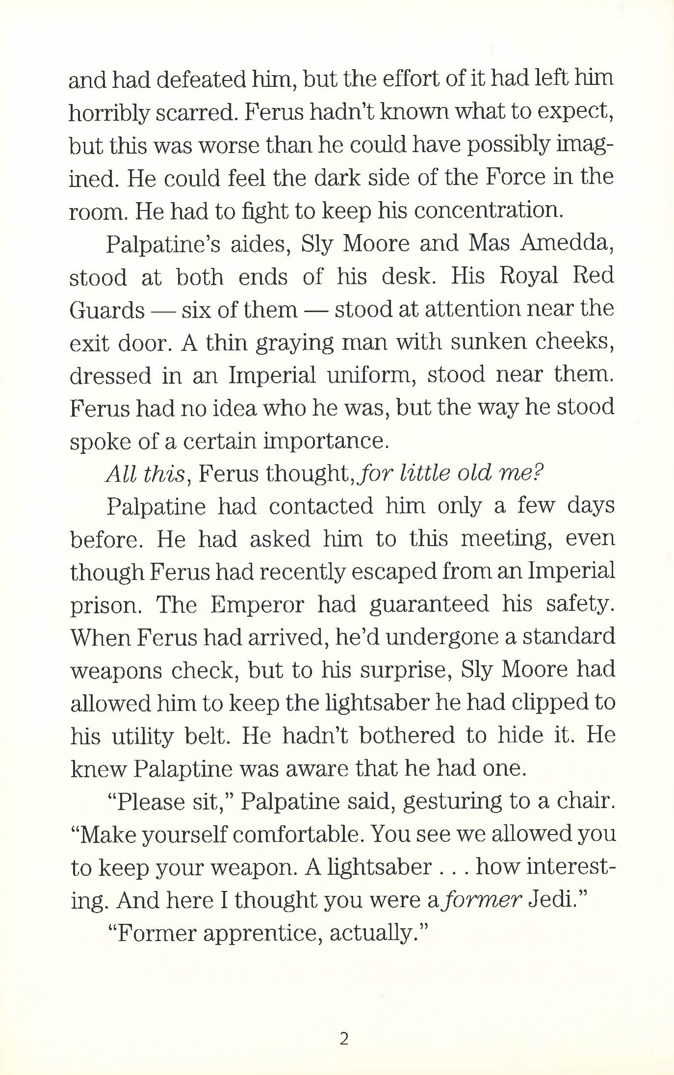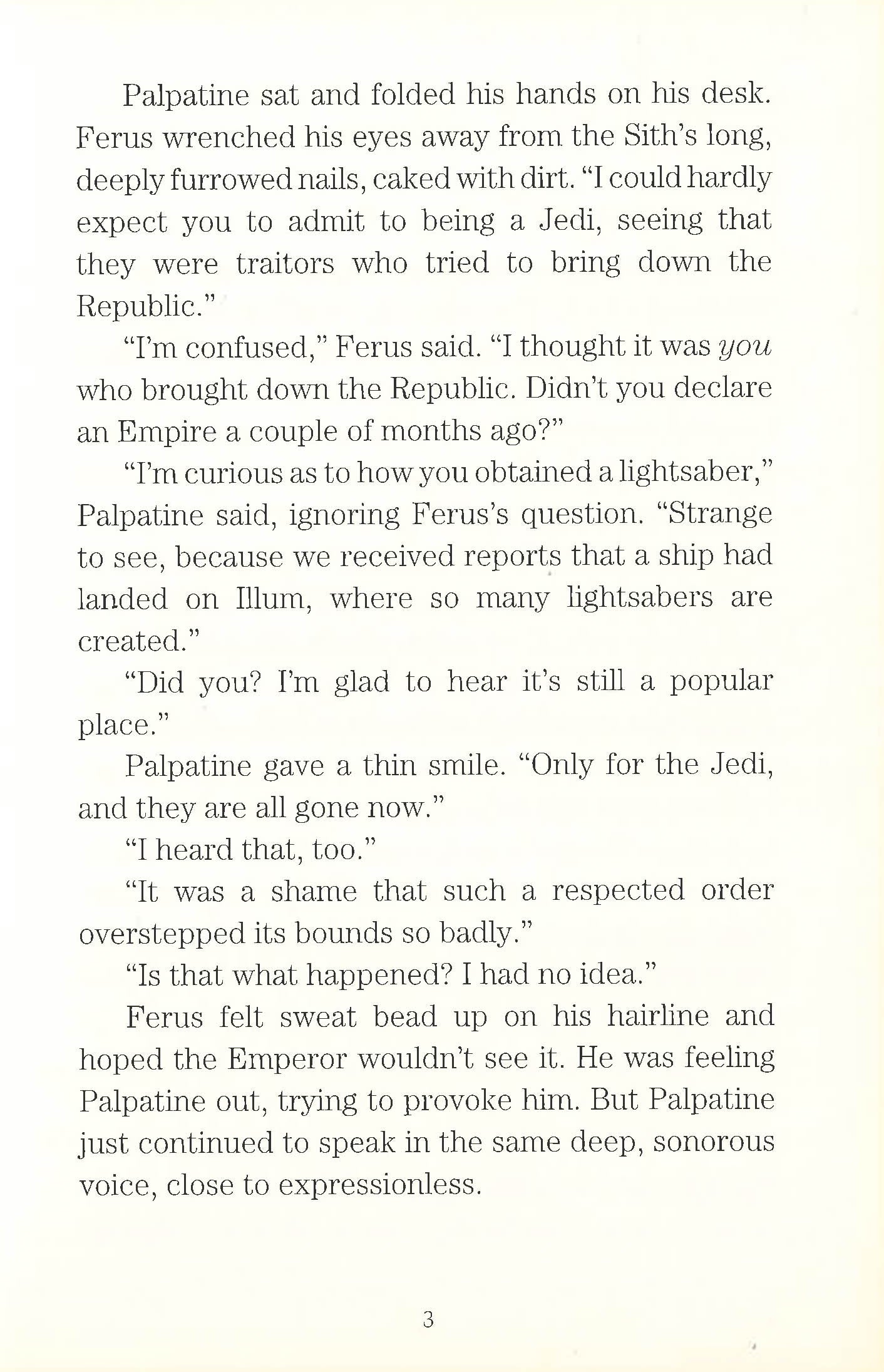 ???????????Ferus Olin faces off against the Emperor! Ferus Olin's allegiance is to the Jedi. But when he's summoned to see the Emperor, the Sith Lord makes him an offer he can't refuse. If he can manage to prevent a planet from plunging into chaos, the Empire will spare Ferus's captured friends. And if he doesn't . . . they'll die. Another heart-stopping Jedi adventure from bestselling author Jude Watson.