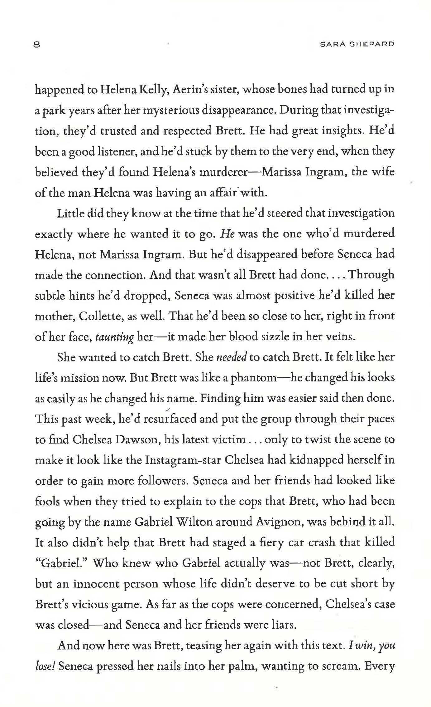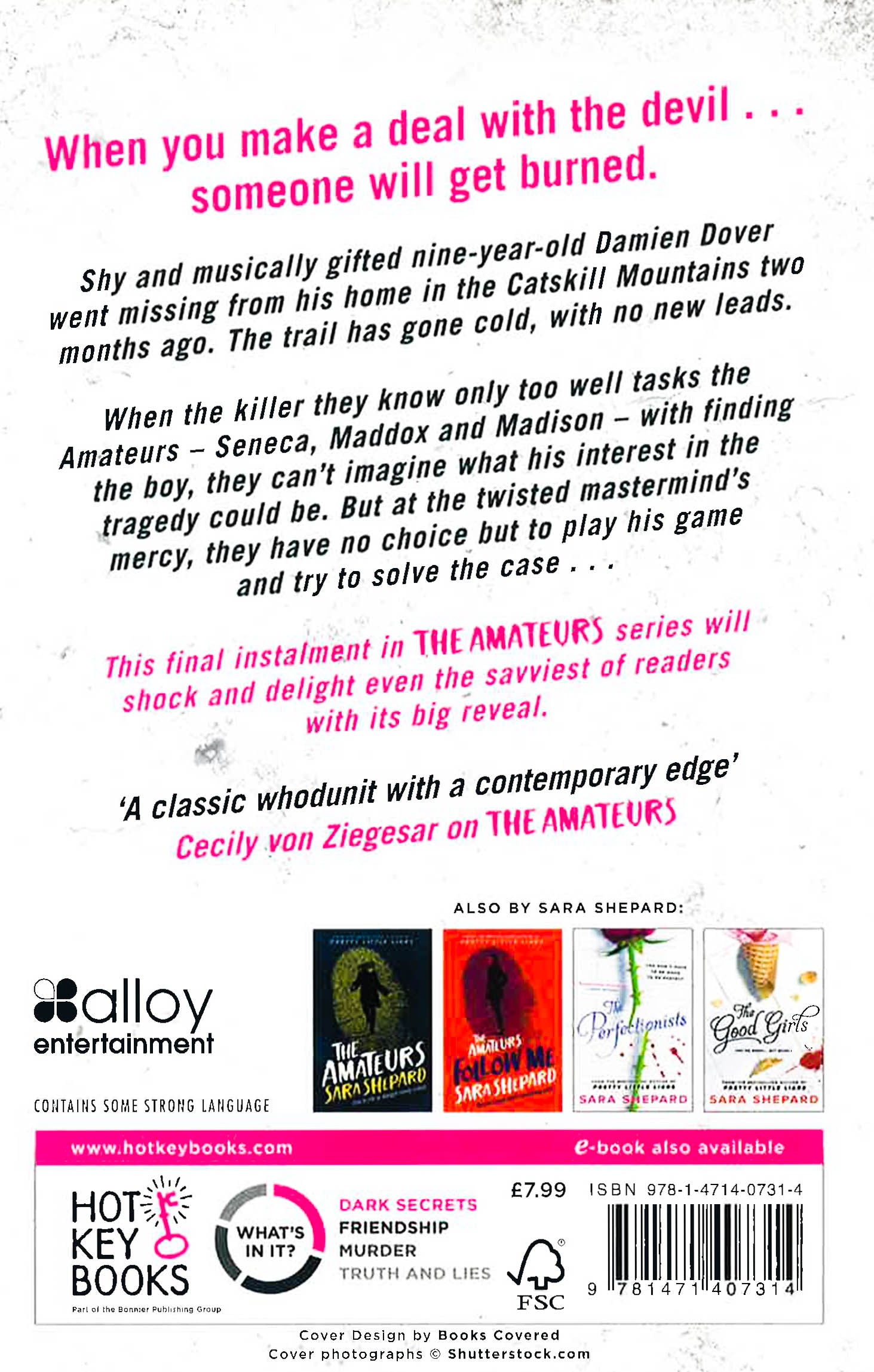 'A classic whodunit with a contemporary edge' Cecily Von Ziegesar author of Gossip Girl on The Amateurs The stakes are higher than ever in this third installment of THE AMATEURS, as Aerin finds herself kidnapped by the killer she knows all too well, and her friends must work to solve a puzzle laid out by the villain in order to save her. At first, the mystery they're tasked with seems to have nothing to do with Aerin or her kidnapper. But as Seneca, Maddox and Madison hit the Jersey Shore to gather clues, they begin to uncover the true background of the killer and the horrors that shaped him into who he is. The scavenger hunt leads them to the family of a recently kidnapped boy and dark secrets they could never have seen coming. As Aerin struggles to play nice with the person who killed her sister in order to buy herself time, her friends work feverishly against the ticking clock that could mean her life, and every clue they uncover leads Seneca to suspect she's more connected to the killer's history than she ever realised ... With nail-biting suspense, twisted secrets and non-stop action, this final installment in #1 New York Times bestselling author of Pretty Little Liars Sara Shepard's THE AMATEURS series will shock and delight even the savviest of readers with its big reveal.