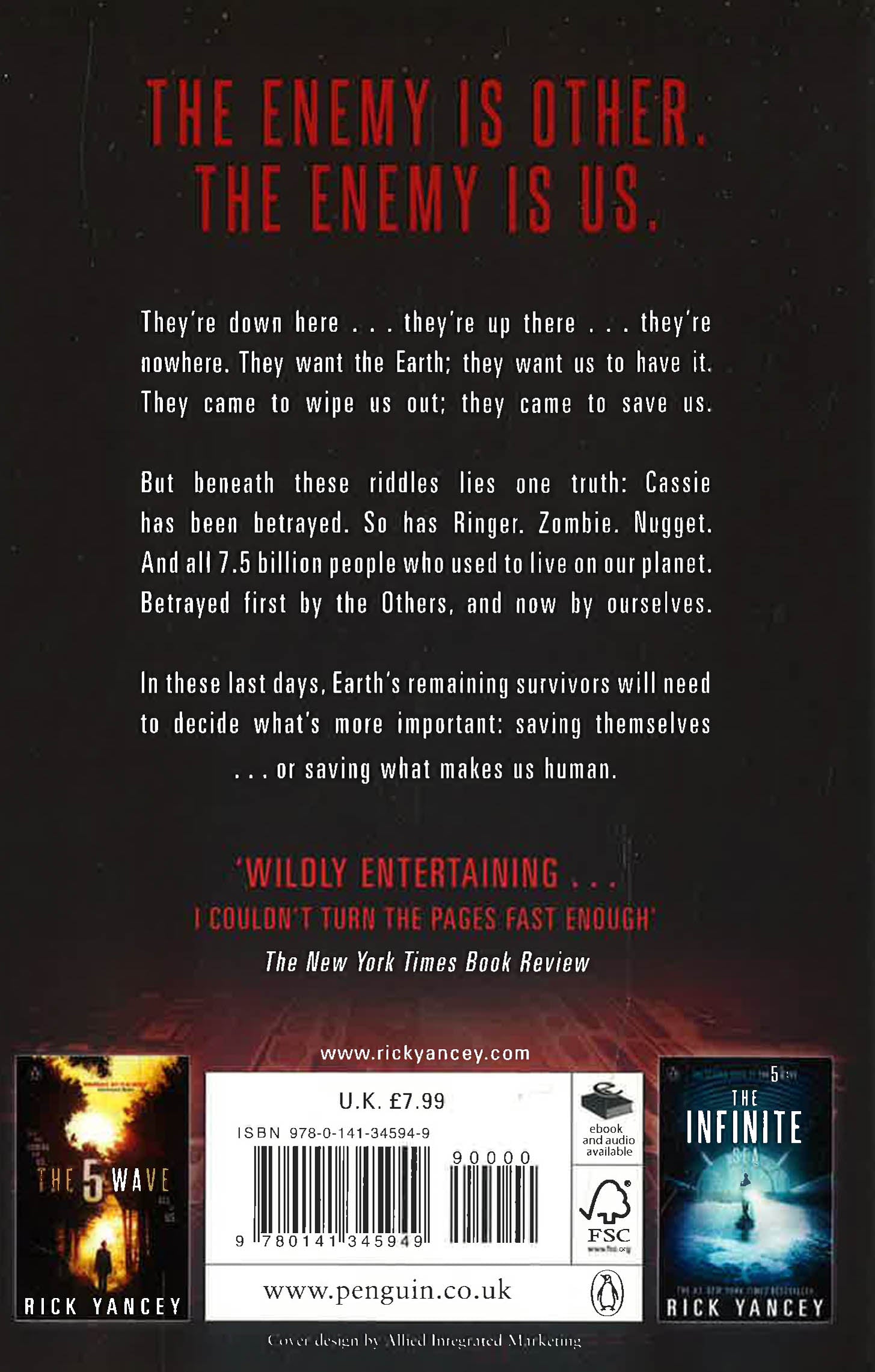 But beneath these riddles lies one truth: Cassie has been betrayed. So has Ringer. Zombie. Nugget. And all 7.5 billion people who used to live on our planet. Betrayed first by the Others, and now by ourselves.