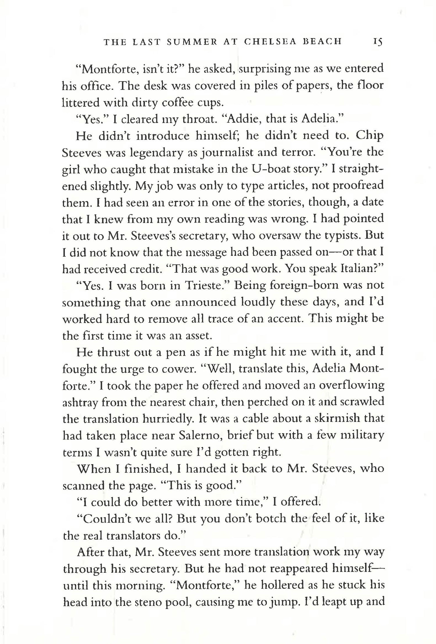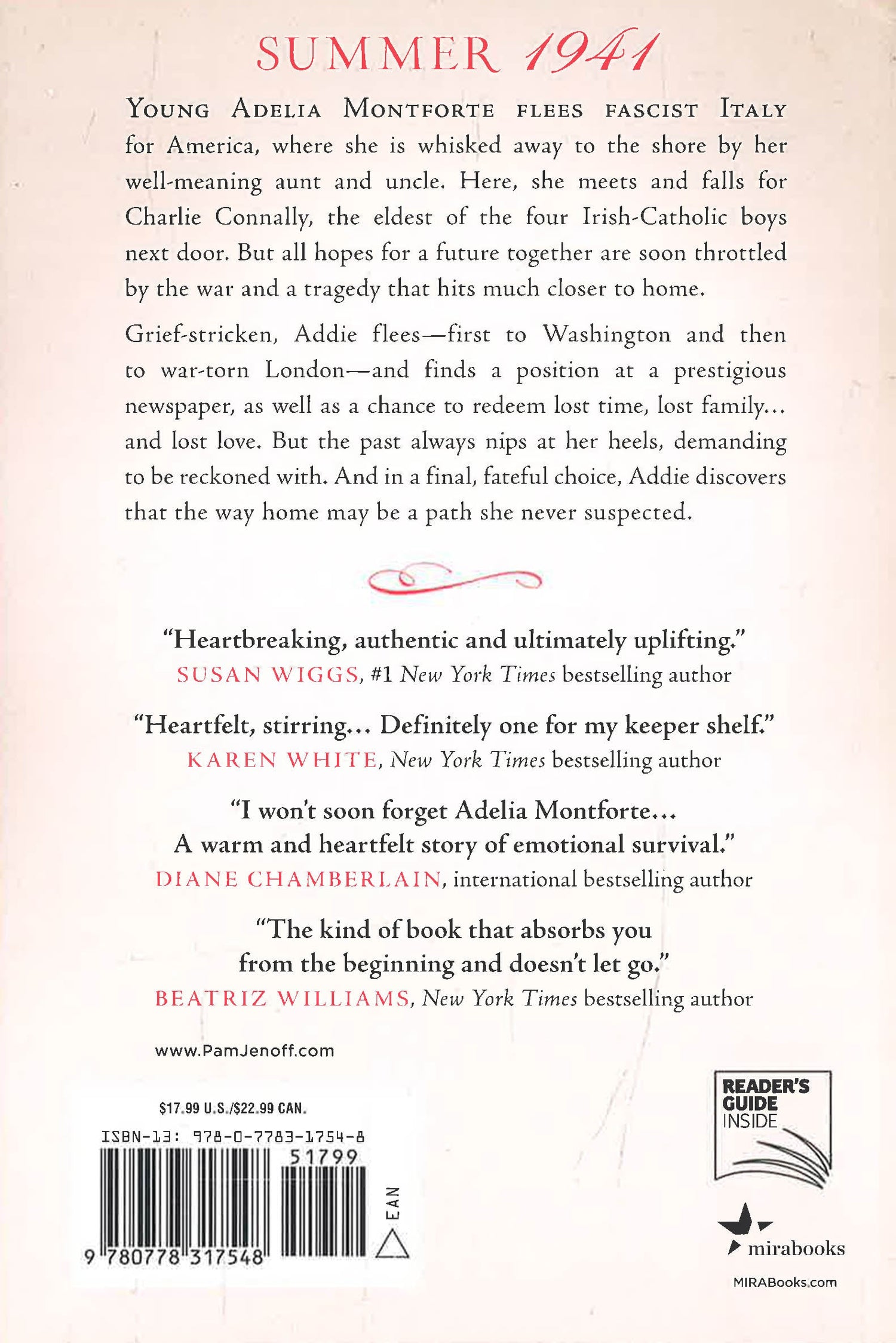 Summer 1941. Young Adelia Montforte flees fascist Italy for America, where she is whisked away to the shore by her well-meaning aunt and uncle. Here, she meets and falls for Charlie Connally, the eldest of the four Irish-Catholic boys next door. But all hopes for a future together are soon throttled by the war and a tragedy that hits much closer to home.