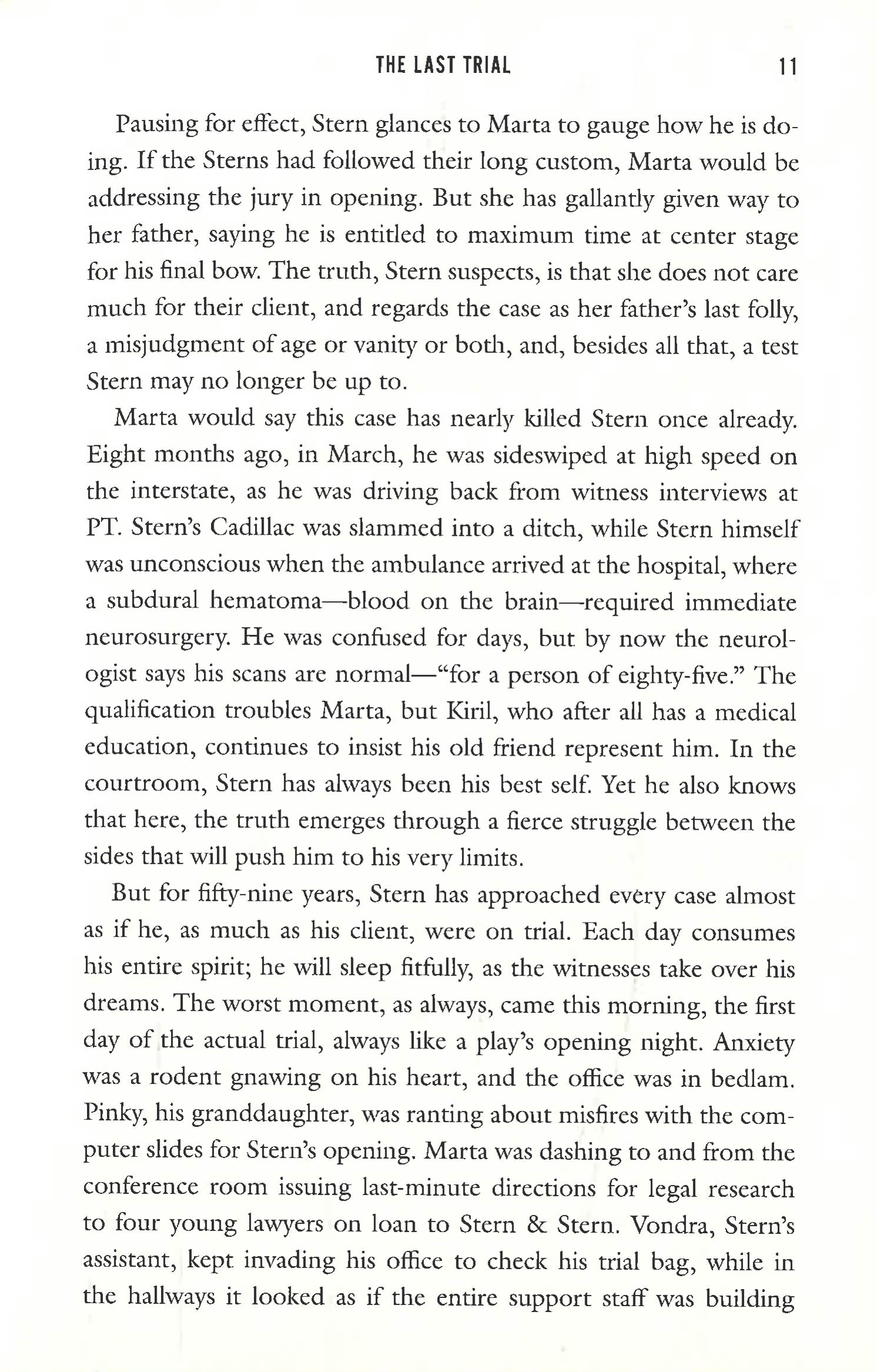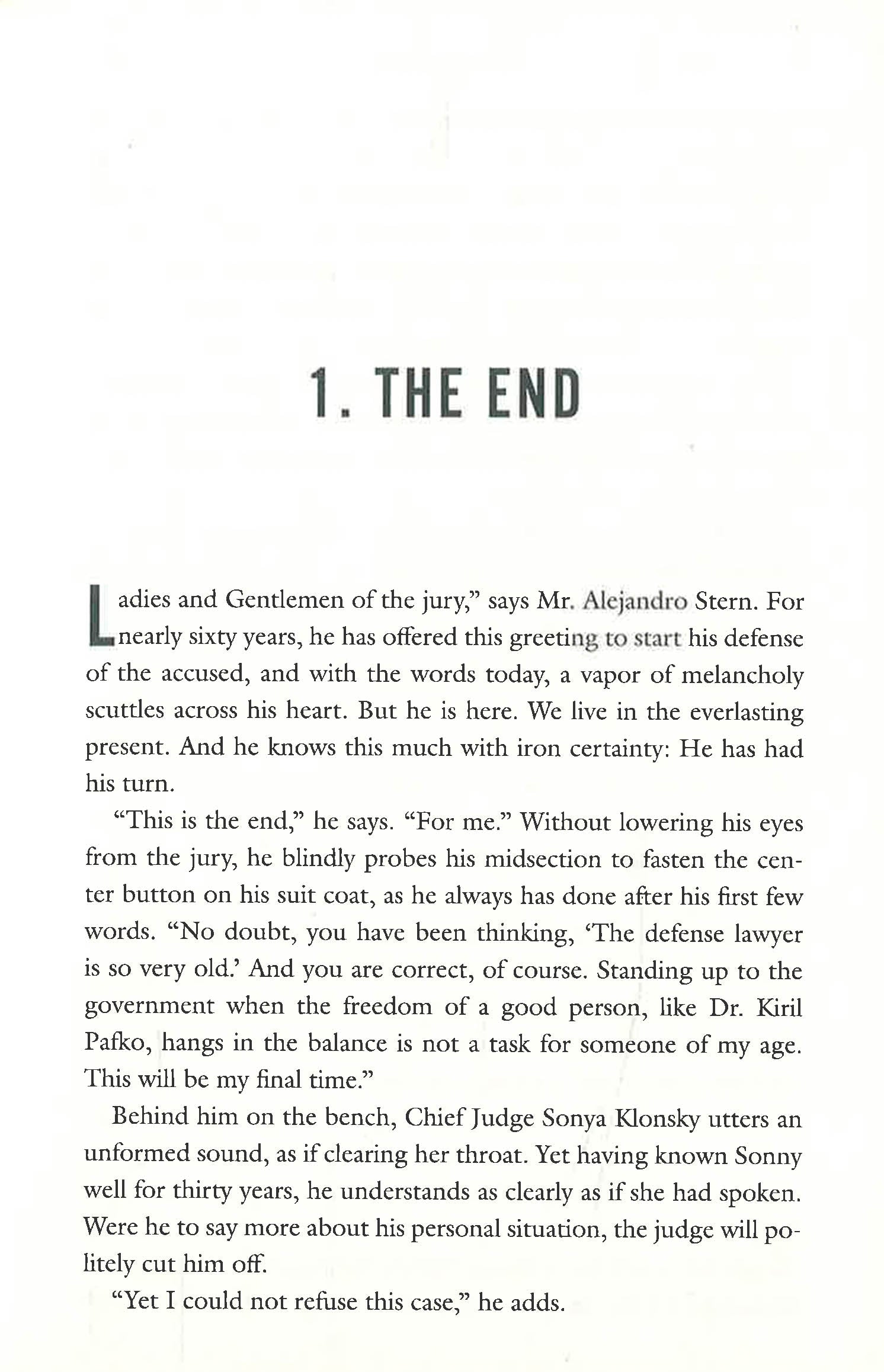 At eighty-five years old, Alejandro "Sandy" Stern, a brilliant defense lawyer with his health failing but spirit intact, is on the brink of retirement. But when his old friend Dr. Kiril Pafko, a former Nobel Prize winner in Medicine, is faced with charges of insider trading, fraud, and murder, his entire life's work is put in jeopardy, and Stern decides to take on one last trial.