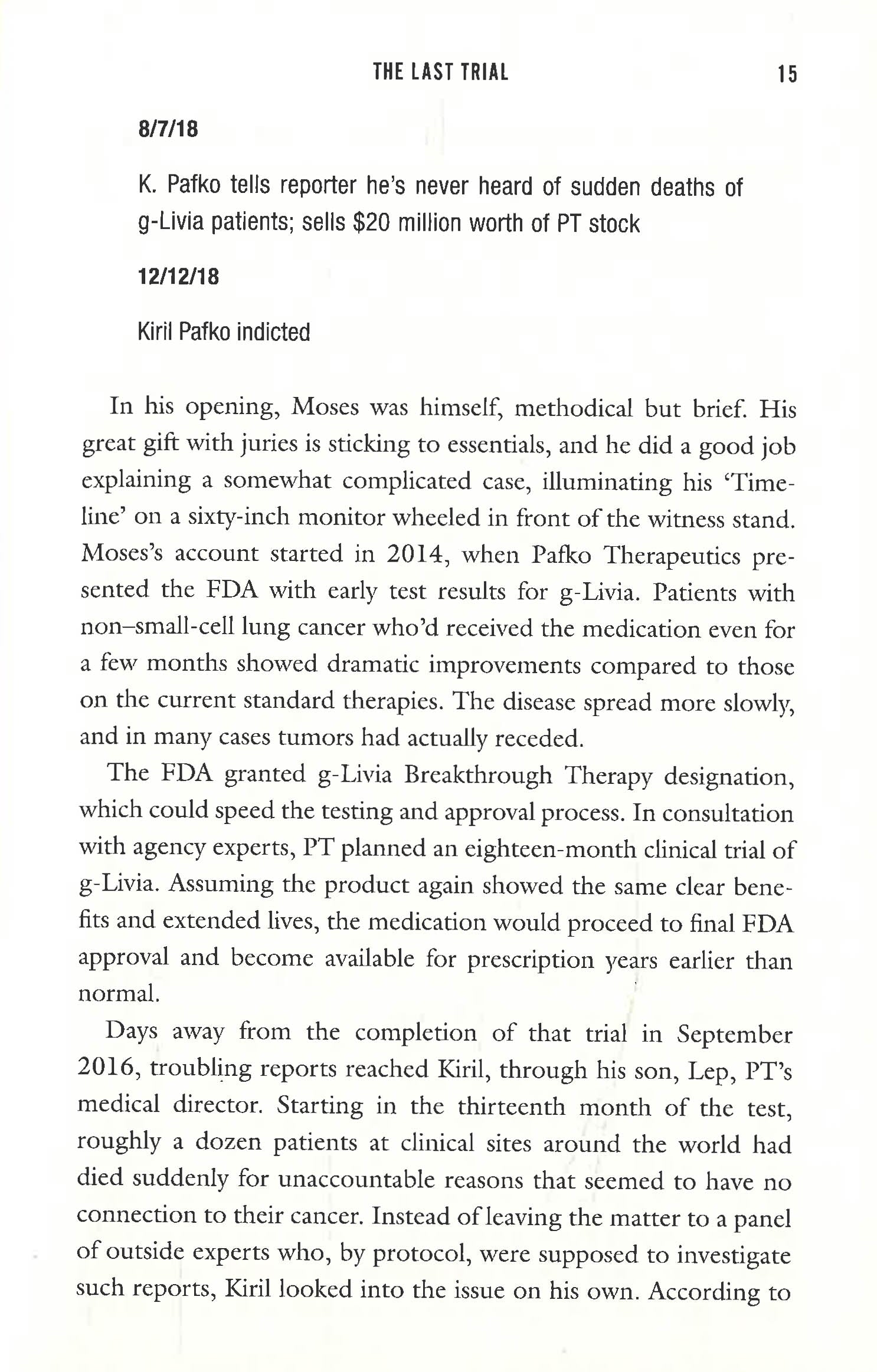 In a case that will be the defining coda to both men's accomplished lives, Stern probes beneath the surface of his friend's dazzling veneer as a distinguished cancer researcher. As the trial progresses, he will question everything he thought he knew about his friend. Despite Pafko's many failings, is he innocent of the terrible charges laid against him? How far will Stern go to save his friend, and -- no matter the trial's outcome -- will he ever know the truth?