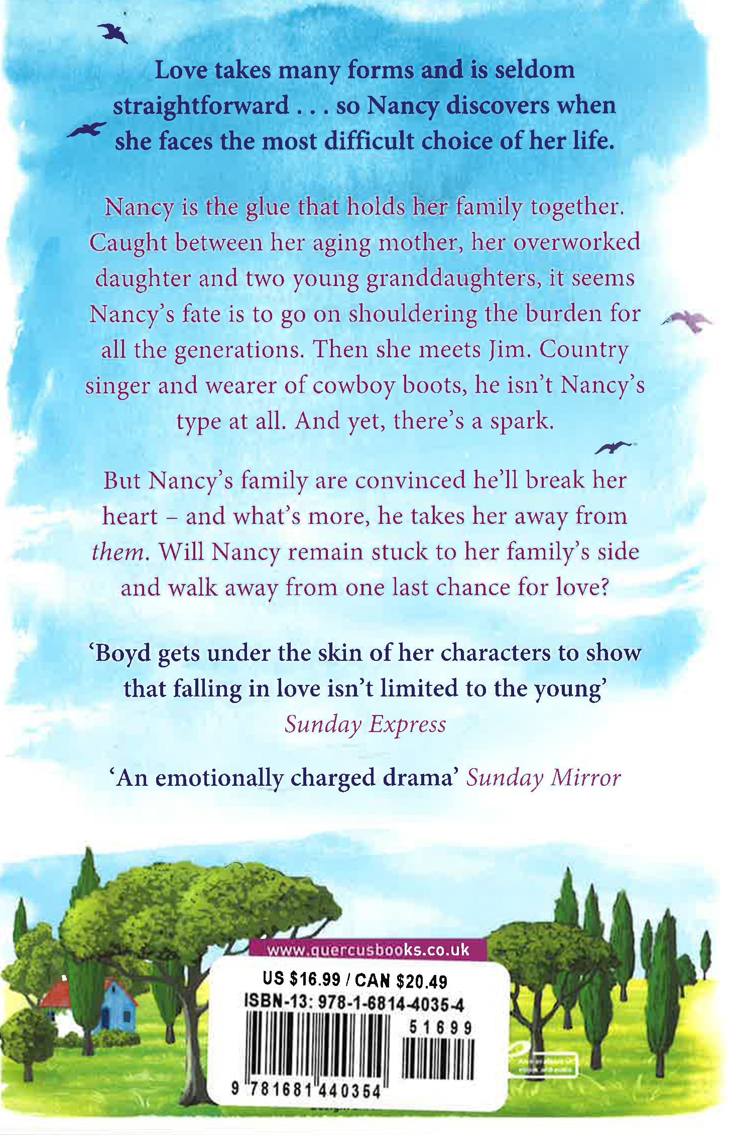Nancy de Freitas is the glue that holds her family together. Caught between her ageing, ailing mother Frances, and her struggling daughter Louise, frequent user of Nancy's babysitting services, it seems Nancy's fate is to quietly go on shouldering the burden of responsibility for all four generations. Her divorce four years ago put paid to any thoughts of a partner to share her later years with. Now it looks like her family is all she has. Then she meets Jim. Smoker, drinker, unsuccessful country singer and wearer of cowboy boots, he should be completely unsuited to the very together Nancy. And yet, there is a real spark.