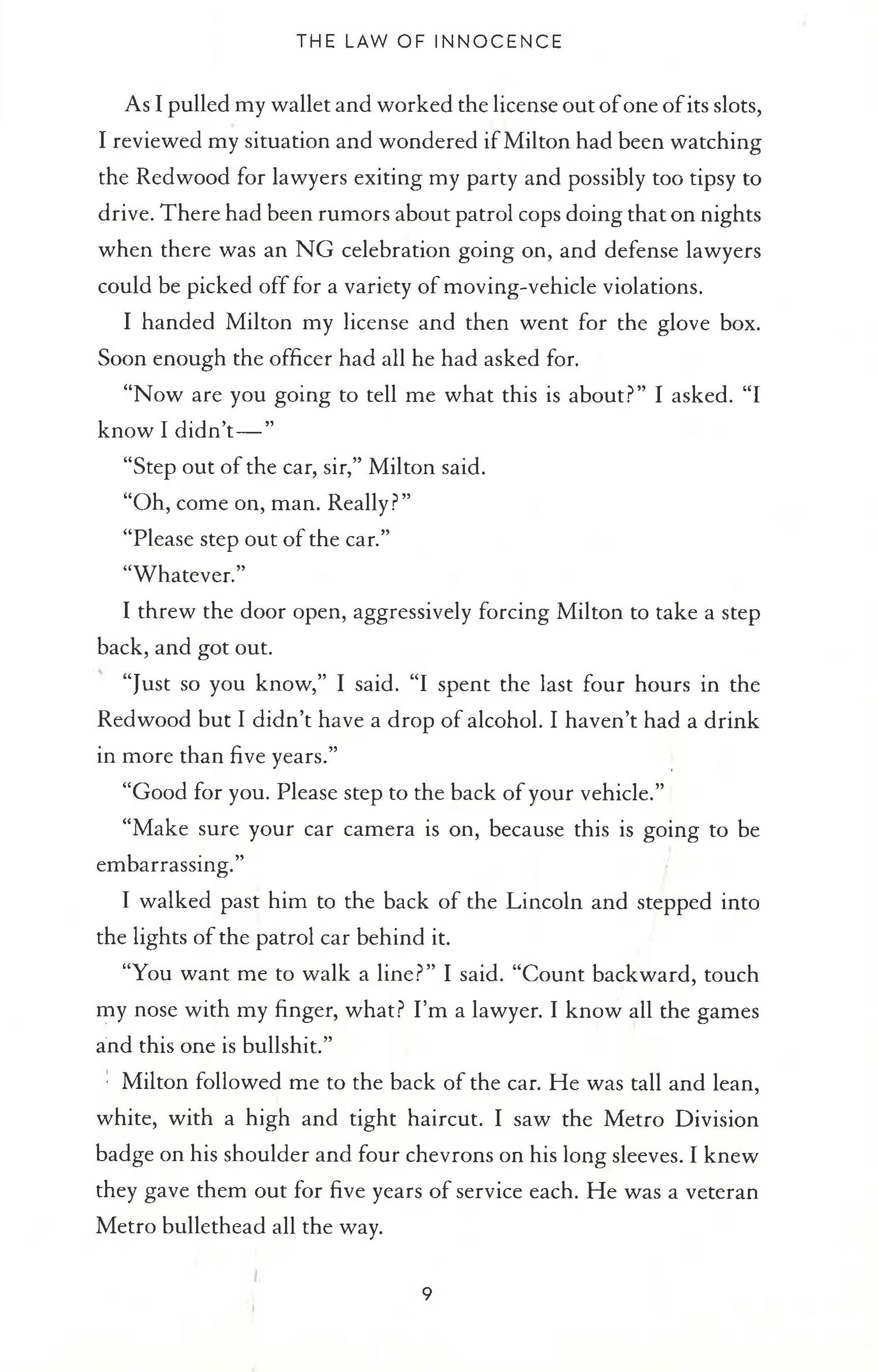 Even if he can obtain a not-guilty verdict, Mickey understands that it won’t be enough. In order to be truly exonerated, he must find out who really committed the murder and why. That is the law of innocence.