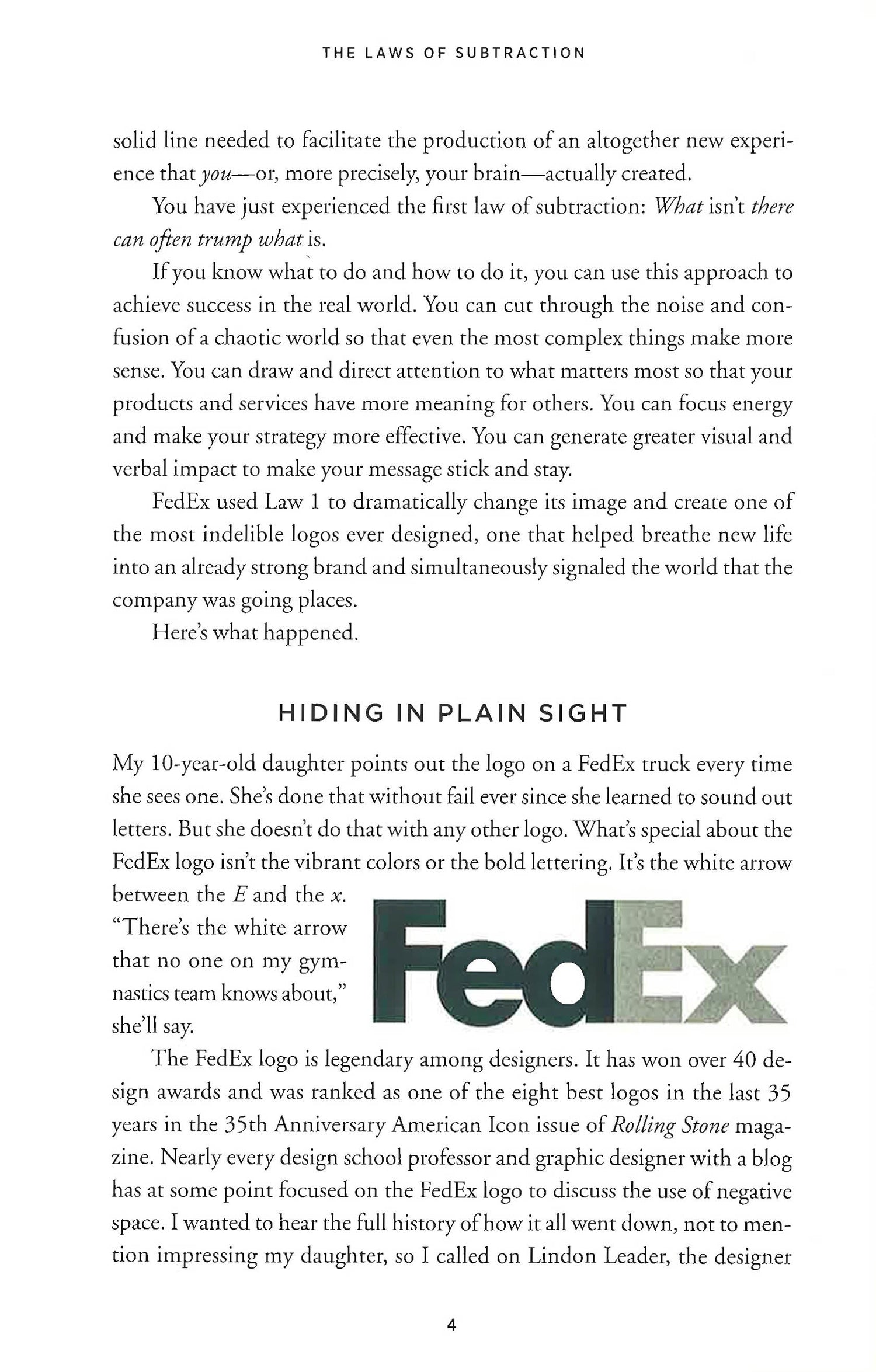 Winner of a 2013 Small Business Book Award for EconomicsThe world is more overwhelming than ever before. Our work is deeper and more demanding than ever. Our businesses are more complicated and difficult to manage than ever. Our economy is more uncertain than ever. Our resources are scarcer than ever. There is endless choice and feature overkill in all but the best experiences. Everybody knows everything about us. The simple life is a thing of the past. Everywhere, there's too much of the wrong stuff and not enough of the right. The noise is deafening, the signal weak. Everything is too complicated and time-sucking.Welcome to the age of excess everything. Success in this new age looks different and demands a new skill: Subtraction.Subtraction is defined simply as the art of removing anything excessive, confusing, wasteful, unnatural, hazardous, hard to use, or ugly . . . or the discipline to refrain from adding it in the first place. And if subtraction is the new skill to be acquired, we need a guide to developing it.Enter The Laws of Subtraction.Through a dozen of the most compelling stories of breakthrough innovation culled from 2,000 cases and bolstered by uniquely personal essays contributed by over 50 of the most creative minds in business today, The Laws of Subtraction outlines six simple rules for winning in the age of excess everything, and delivers a single yet powerful idea: When you remove just the right things in just the right way, something very good happens.The Laws of Subtraction features contributions by over 50 highly regarded thinkers, creatives, and executives.On Law #1: What Isn't There Can Often Trump What Is"When you reduce the number of doors that someone can walk through, more people walk through the one that you want them to walk through." -- SCOTT BELSKY, founder and CEO of Behance and author of Making Ideas HappenOn Law #2: The Simplest Rules Create the Most Effective Experience"Keeping it simple isn't easy. By exploiting subtraction in innovation, we've been able to create an environment of freedom and creativity that allows us to thrive." -- BRAD SMITH, CEO, IntuitOn Law #3: Limiting Information Engages the Imagination"Subtraction can mean the difference between a highly persuasive presentation and a long, convoluted, and confusing one. Why say more when you can say less?" -- CARMINE GALLO, author of The Apple ExperienceOn Law #4: Creativity Thrives Under Intelligent Constraints"Here's the key to the conundrum for managers who want to stoke the innovation fire: That close cousin of scarcity, constraint, can indeed foster creativity." -- TERESA AMABILE, author of The Progress PrincipleOn Law #5: Break Is the Important Part of Breakthrough"If you kill the butterflies in your stomach, you'll kill the dream. Embrace the feeling. Save the butterflies." -- JONATHAN FIELDS, author of UncertaintyOn Law #6: Doing Something Isn't Always Better Than Doing Nothing"When we're faced with the greatest odds against us, often we need to edit rather than add." -- CHIP CONLEY, cofounder of Joie de Vivre Hospitality and author of Emotional Equations