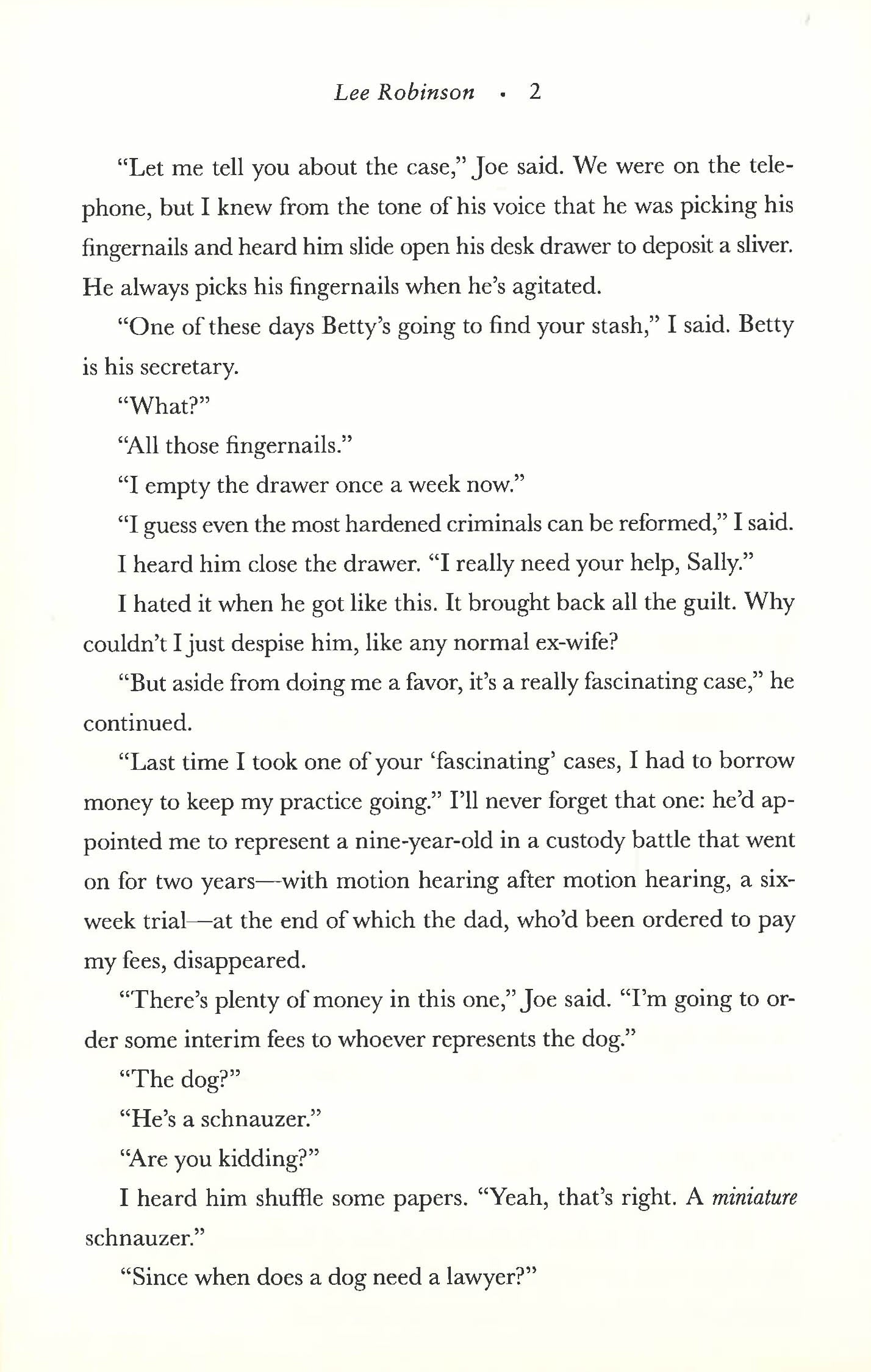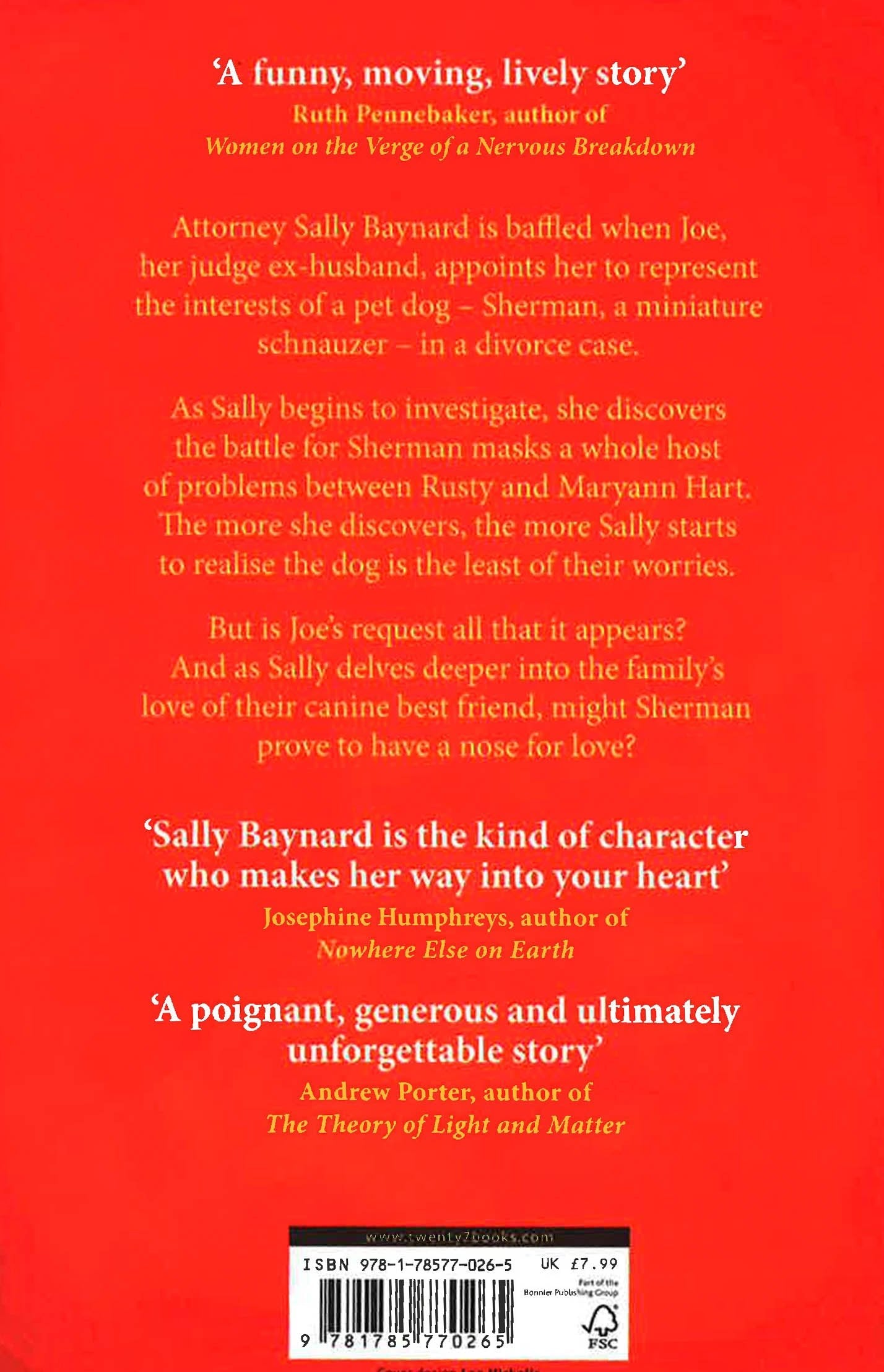 For fans of Marley and Me and Katie Fforde's Paradise Fields, Lawyer for the Dog is Lee Robinson's charming, moving and funny debut novel. Attorney Sally Baynard is baffled when Joe, her judge ex-husband, appoints her to represent the interests of a pet dog - Sherman, a miniature schnauzer - in a divorce case. As Sally begins to investigate, she discovers the battle for Sherman masks a whole host of problems between Rusty and Maryann Hart. The more she discovers, the more Sally starts to realise the dog is the least of their worries. But is Joe's request all that it appears? And as Sally delves deeper into the family's love of their canine best friend, might Sherman prove to have a nose for love?