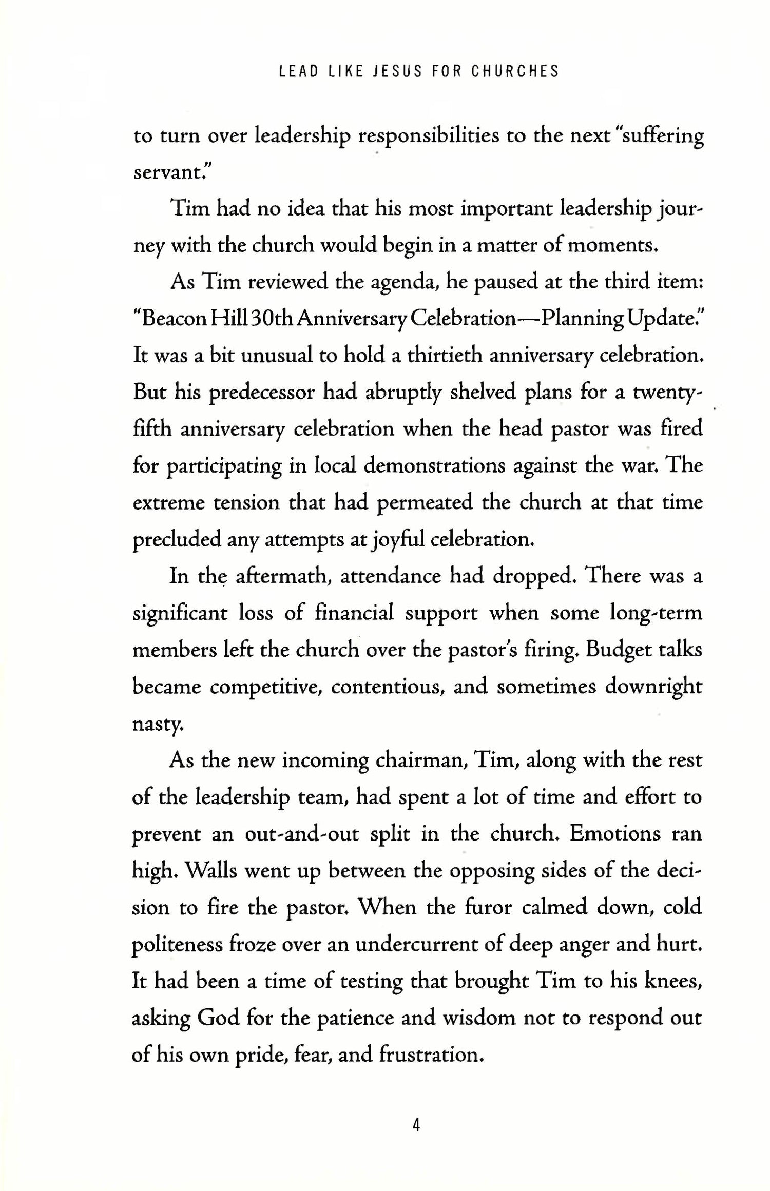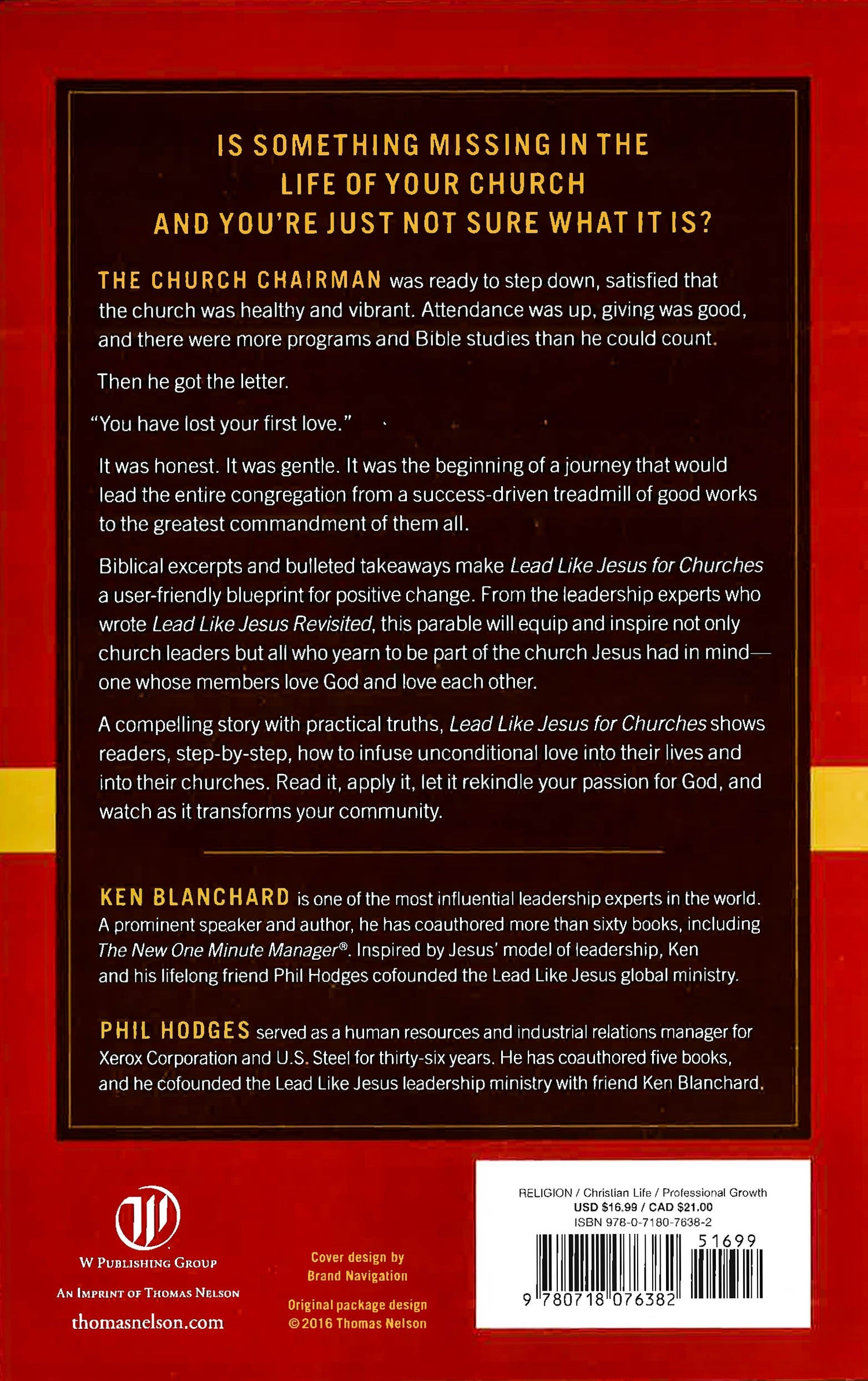 In this newly revised version, Lead like Jesus for Churches (formerly The Most Loving Place in Town) is the story of two men; a disillusioned church elder and a gifted young pastor, who recognize that their church has lost sight of its number one priority: loving God and each other. They begin a search-independently at first-to recapture their lost love and then together lead their fellowship in a successful discovery of the secret to becoming a beacon of love in their community. By the end of the story you clearly see why this secret-so simple yet so profound-is vital and how to apply it to the life of your church.