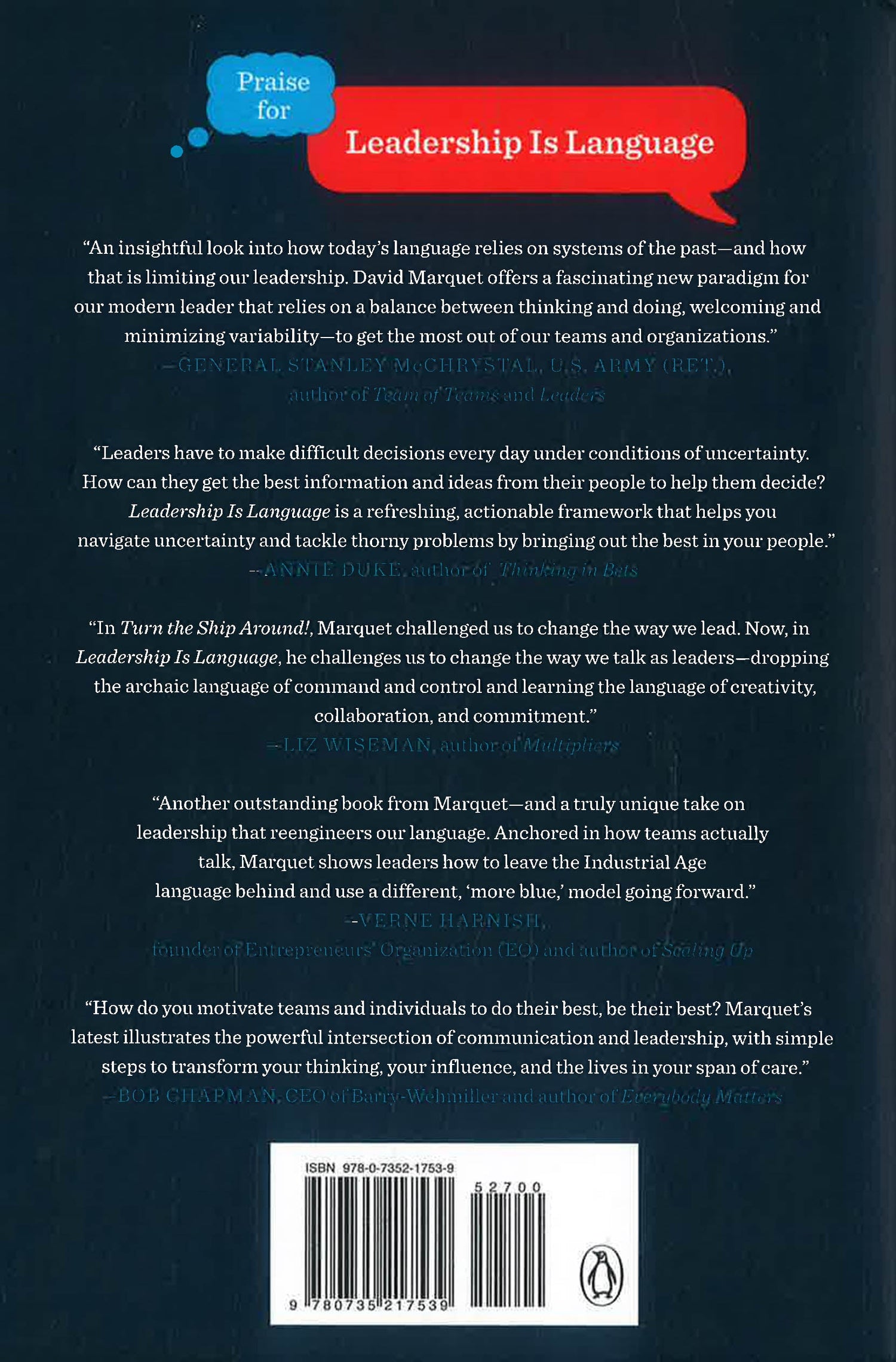 It's time to ditch the industrial age playbook of leadership. In Leadership is Language, you'll learn how choosing your words can dramatically improve decision-making and execution on your team. Marquet outlines six plays for all leaders, anchored in how you use language:
