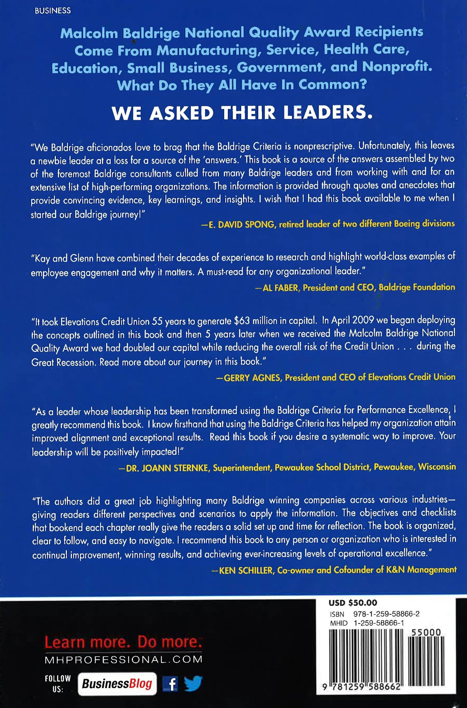 Filled with candid CEO interviews and powerful new insights, it's a complete master class in succeeding and leading-the Malcolm Baldrige way.