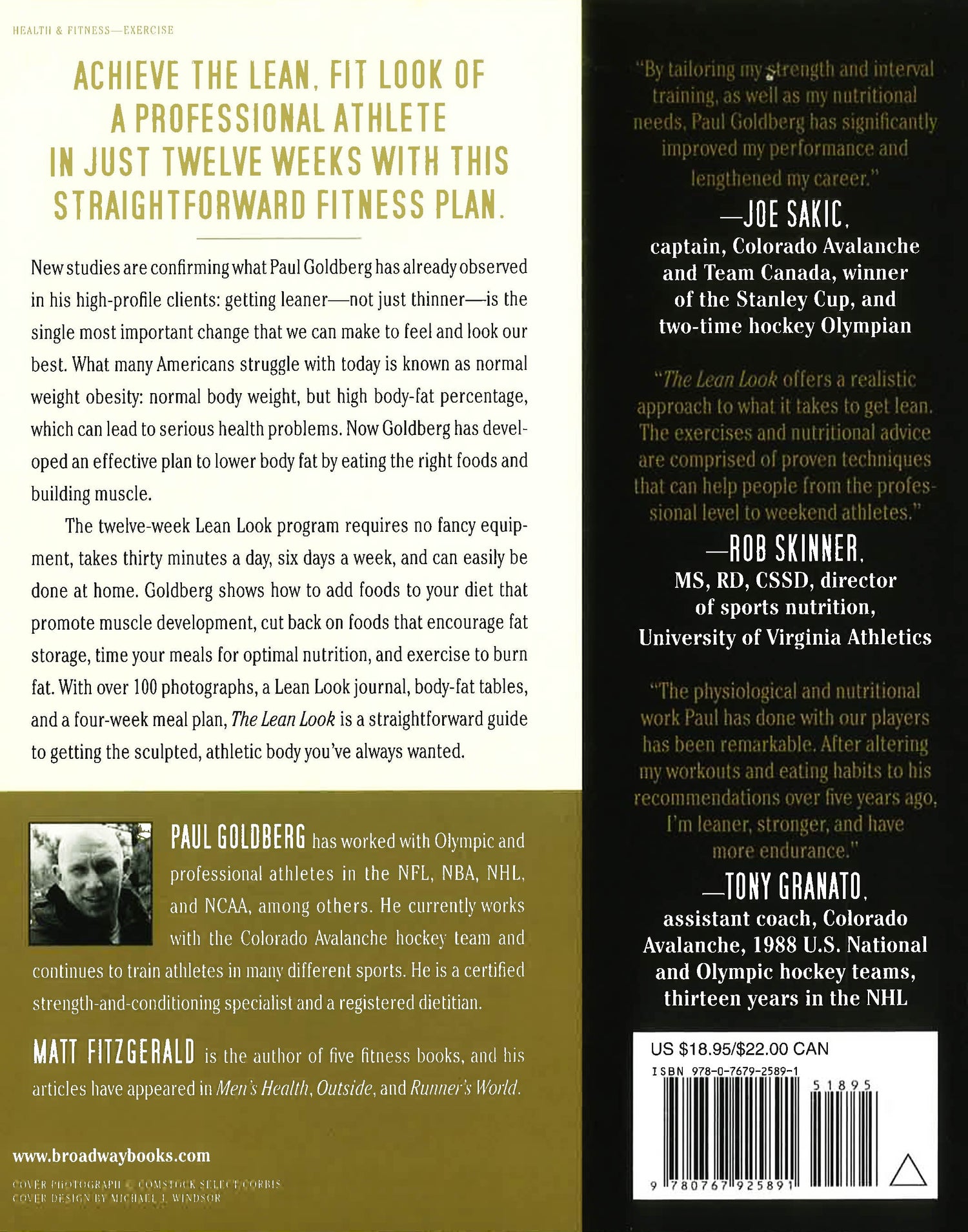 The twelve-week Lean Look program requires no fancy equipment, takes thirty minutes a day, six days a week, and can easily be done at home. Goldberg shows how to add foods to your diet that promote muscle development, cut back on foods that encourage fat storage, time your meals for optimal nutrition, and exercise to burn fat. With over 100 photographs, a Lean Look journal, body-fat tables, and a four-week meal plan, The Lean Look is a straightforward guide to getting the sculpted, athletic body you've always wanted.