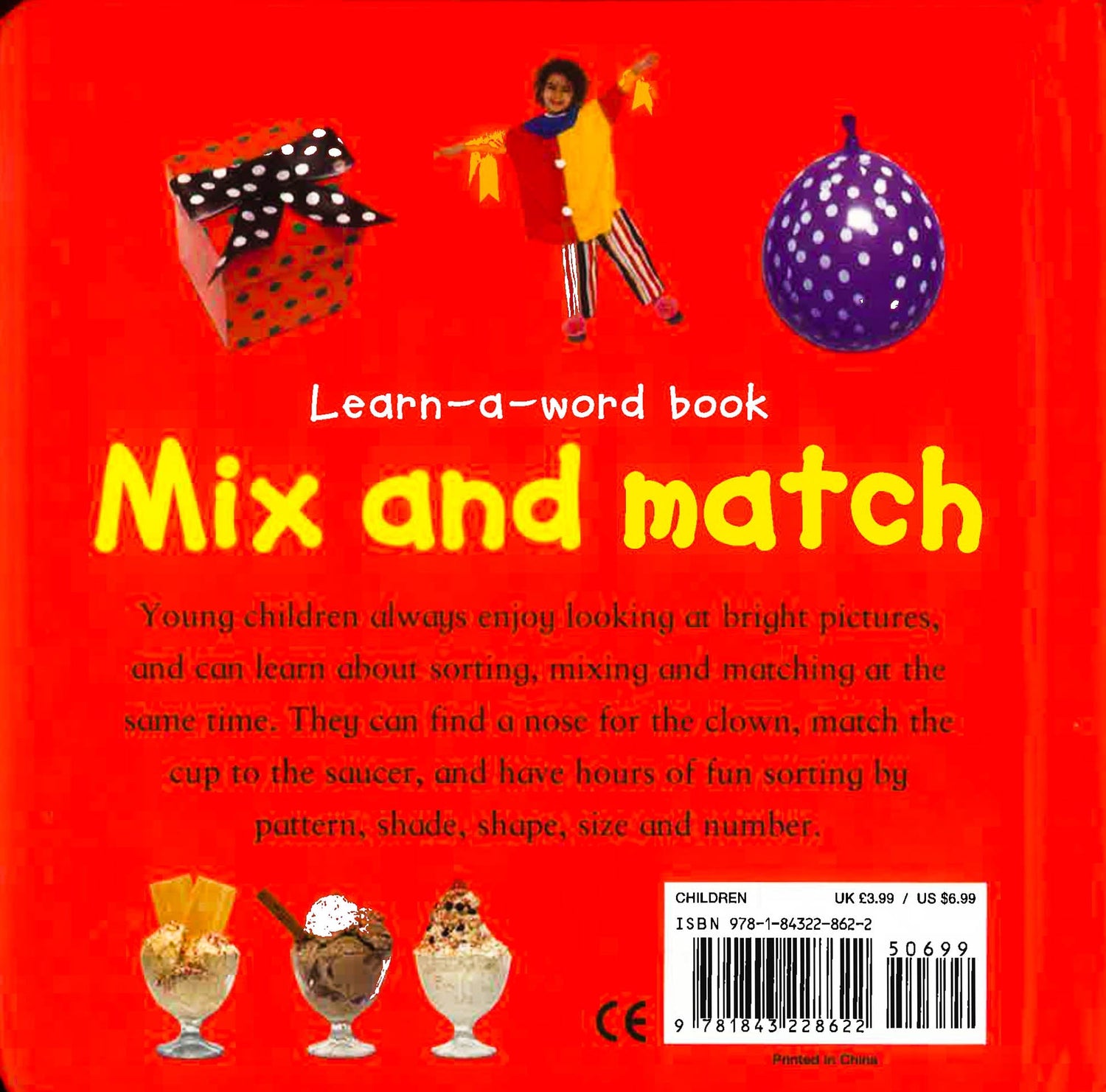 Young children always enjoy looking at bright pictures, and with this book they can learn about mixing and matching at the same time. They can unite pairs of shoes, group together all the red objects, spot all the spotted things, find a nose for the clown, match the cup to the saucer, and have hours of fun sorting by pattern, shade, shape, size and number. The straightforward text encourages reading skills and interactive questioning - how many green things can you find, who is the smallest in your family, and have the kittens got a saucer of milk each? This first words and picture book will delight and inform children, whether reading on their own or with an adult. Compiled with the advice of educational specialists, this special padded boardbook combines lively, simple text with bold, bright photographs to promote the development of literacy skills. Experts agree that preschool children respond more immediately to photographs than to illustrations, and this book shows lots of appealing and everyday things that go together - and lots of things that don't!Readers are invited to pair up the mixed-up socks, group objects by their appearance, count whether there are enough spoons for all the ice-cream sundaes, and much more. The images are carefully arranged into visual and subject groups, such as pairs of things, size, shape, natural partners, and types of clothing. This encourages young readers to make connections, and to see how various things relate and link together.