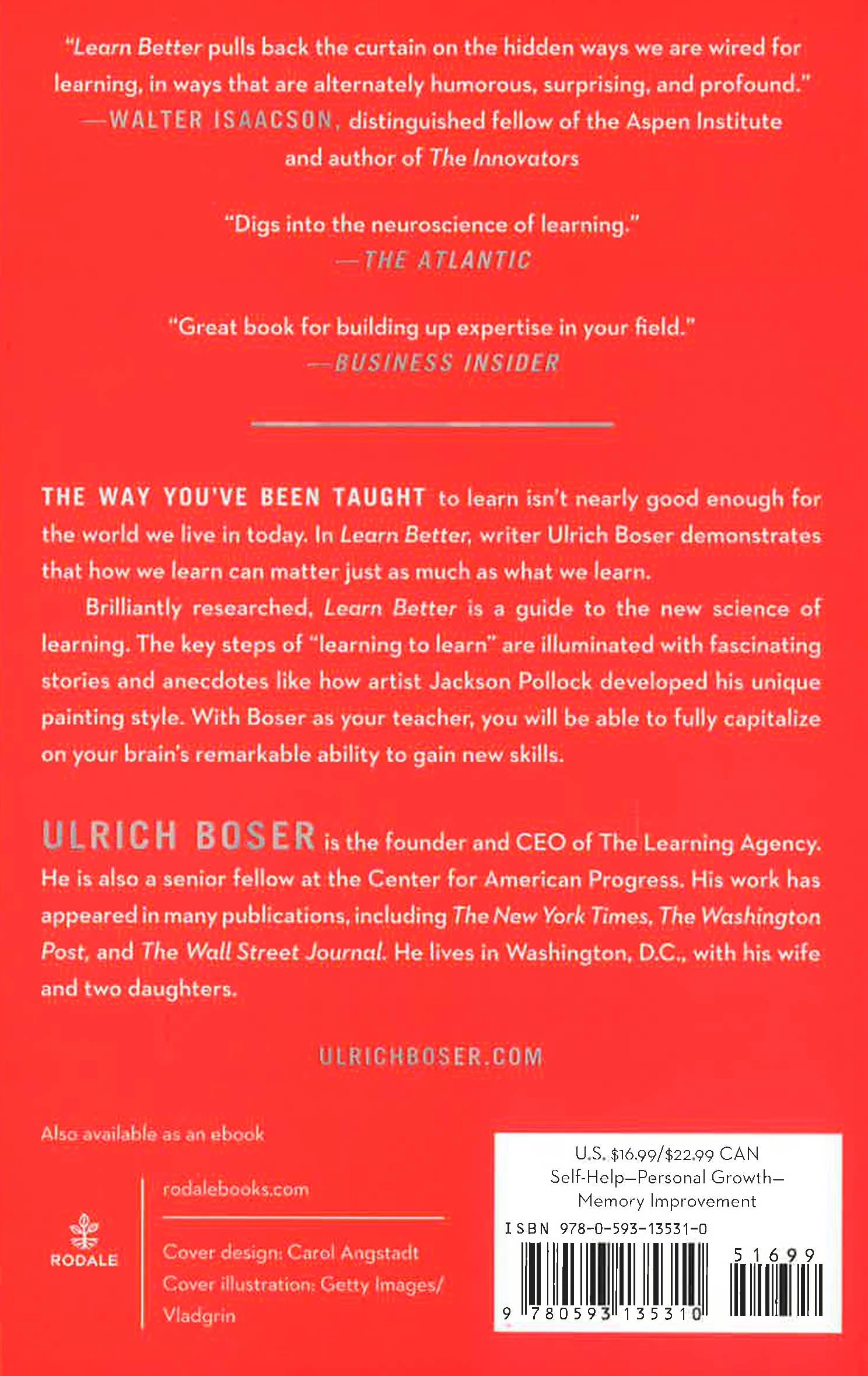 For centuries, experts have argued that learning was about memorizing information: You're supposed to study facts, dates, and details; burn them into your memory; and then apply that knowledge at opportune times. But this approach to learning isn't nearly enough for the world that we live in today, and in Learn Better journalist and education researcher Ulrich Boser demonstrates that how we learn can matter just as much as what we learn. In this brilliantly researched book, Boser maps out the new science of learning, showing how simple techniques like comprehension check-ins and making material personally relatable can help people gain expertise in dramatically better ways. He covers six key steps to help you "learn how to learn," all illuminated with fascinating stories like how Jackson Pollock developed his unique painting style and why an ancient Japanese counting device allows kids to do math at superhuman speeds. Boser's witty, engaging writing makes this book feel like a guilty pleasure, not homework. Learn Better will revolutionize the way students and society alike approach learning and makes the case that being smart is not an innate ability--learning is a skill everyone can master. With Boser as your guide, you will be able to fully capitalize on your brain's remarkable ability to gain new skills and open up a whole new world of possibilities.