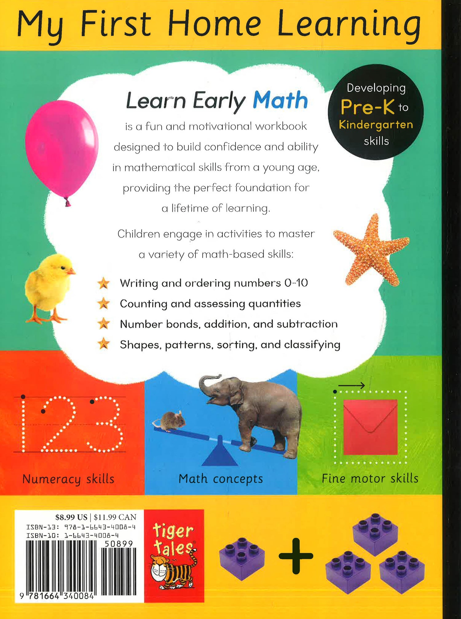 Learn Early Math is a fun and motivational workbook designed to build confidence and ability in learning to write the numbers 1 through 10 along with simple math skills for Pre-K through Kindergarten. This workbook is filled with a wide variety of learning activities to practice writing numbers, counting, and also simple addition, subtraction, and more.