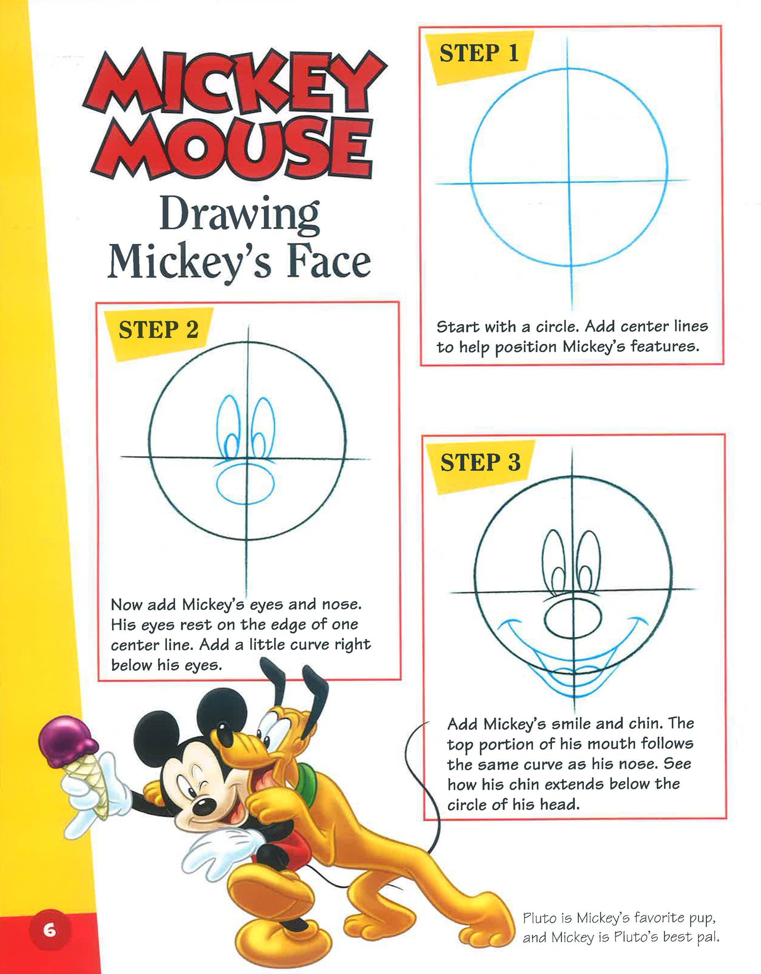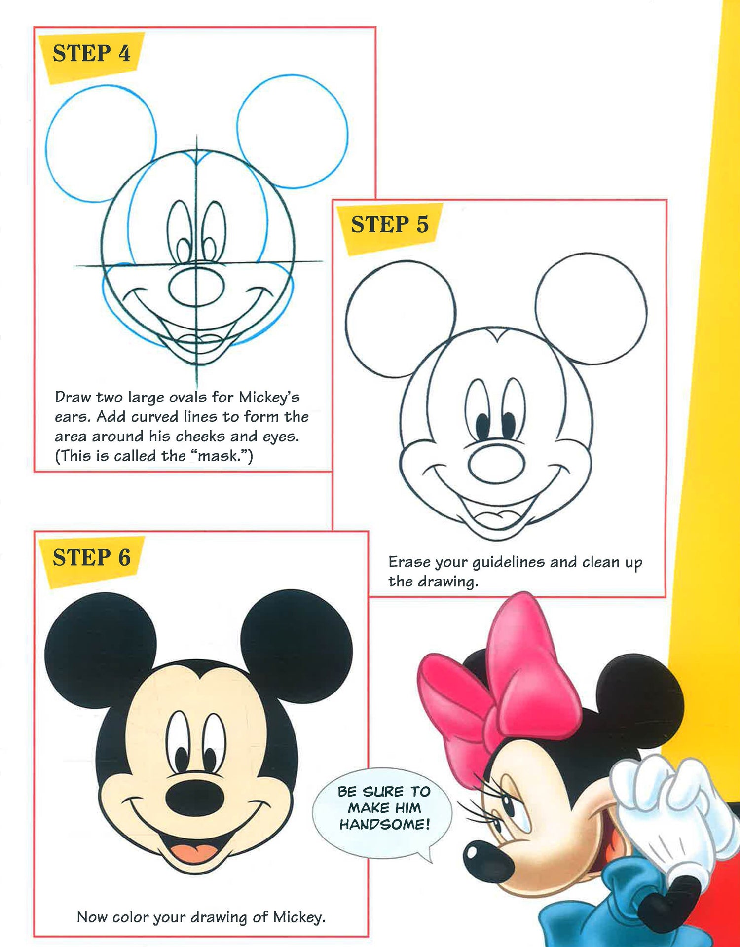 You just need to grab a pencil, a piece of paper, and your copy of Learn to Draw Disney Celebrated Characters Collection, and flip to the character you want to draw. You’ll draw the basic shapes shown in step one, and move on to step two, step three, and keep going! The new lines in each step are shown in blue, so you’ll know exactly what to draw. After adding all the details in each step, darken the lines you want to keep and erase the rest. Finally, add color to your drawing with felt-tip markers, colored pencils, watercolors, or acrylic paints.