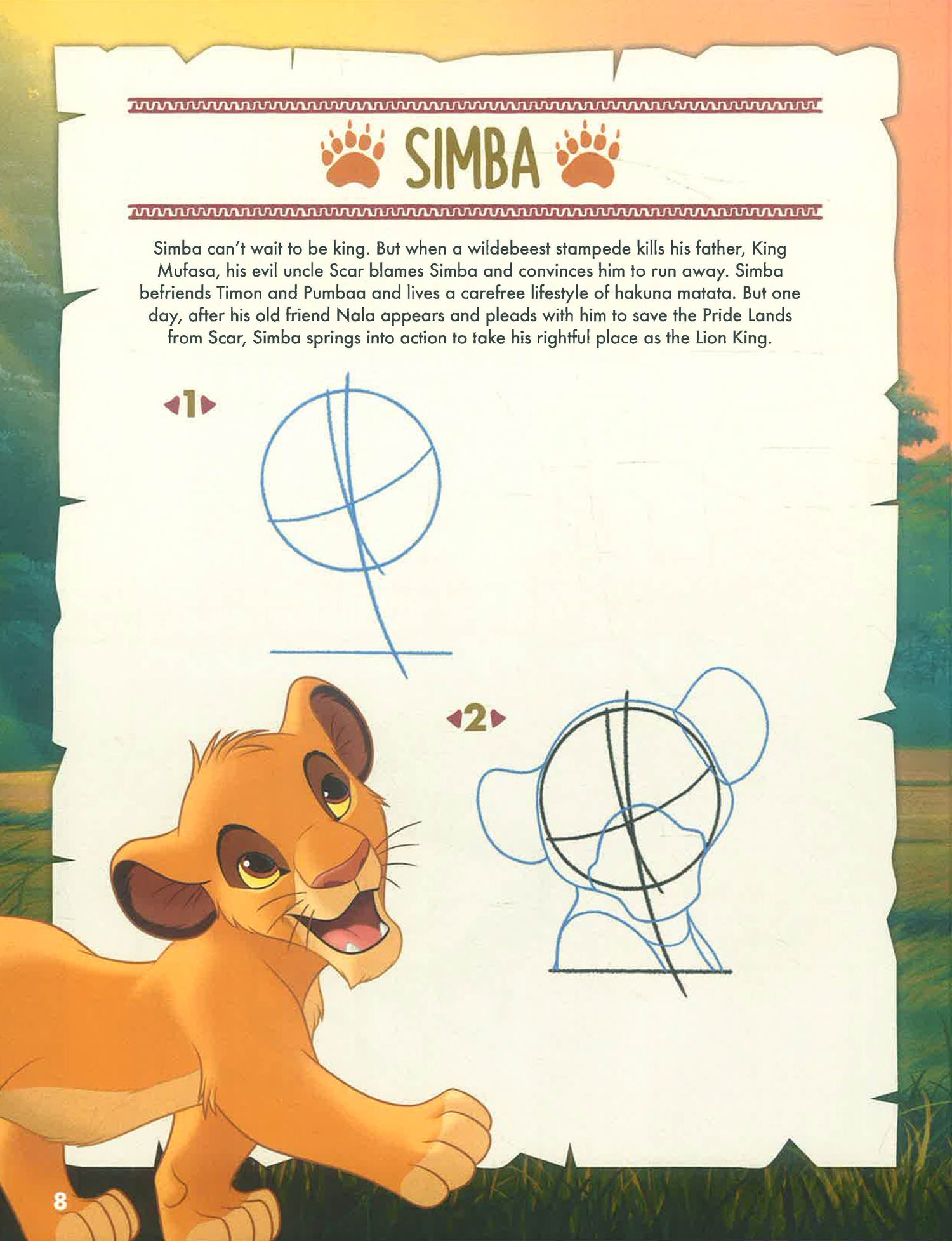 Plus, learn some fun facts about the characters from The Lion King as you learn to draw them. Brief character descriptions and art instruction from professional Disney animators round out this exciting artistic adventure to the Pride Lands.