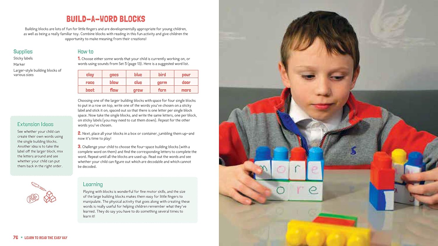This book is perfect for children in any stage of their reading journey, whether they’ve had some practice or are just beginning. Activities start with the basics and work up from there so kids can gradually build upon each new skill. And with Heather’s lessons incorporating the toys, games and art projects children love, they’ll spend the afternoon playing, nearly forgetting they’re learning one of life’s most important skills. Help your child practice letter sounds with fun Bubble Wrap! Pop a few bubbles and see if they can pronounce the letters underneath. Graduate to spelling games and compete head-to-head in a round of word dominoes. Hone their reading skills with a game of Twister! Get the whole family involved and laugh the day away as you challenge each other to read out the words on each dot. With activities that are hands-on and engaging, children will have a blast while learning a life-long skill.
