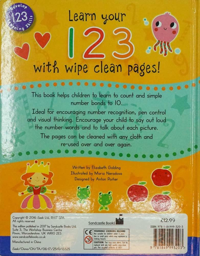 This book helps children to learn to count and simple number bonds to 10. Ideal for encouraging number recognition, pen control and visual thinking. Encourage your child to say out loud the number words and to talk about each picture.The pages are laminated and can be used over and over again. The page can be cleaned with any cloth and re-used over and over again.